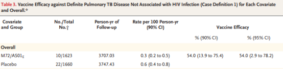 2018年《新英格兰医学杂志》(NEJM)对BCG二次接种预防结核病的效力进行了研究。结果显示,BCG再次接种的预防效力为45.4%,仍可有效减少青少年的持续性结核感染。 另一项NEJM的研究则发现,新疫苗M72/AS01E的总体效力为54%,可有效预防HIV-的潜伏性结核感染进展为活动性肺结核,提示该疫苗可能将为肺结核预防带来更多新的选择。