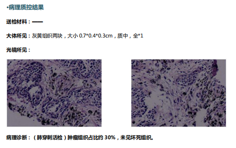2019年8月29日,取肺部穿刺活检组织送检“圣维尔实体瘤50基因检测”。