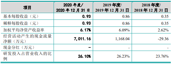 据睿昂基因招股书,2018年、2019年、2020年营业收入分别为22,444.33万元、25,547.90万元、28,492.60万元,净利润分别为1,457.68万元、3,594.77万元,3,881.77万元,研发投入占营业收入的比例分别为23.76%、26.23%、26.10%。