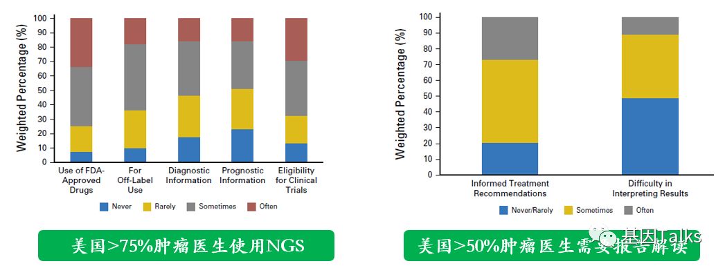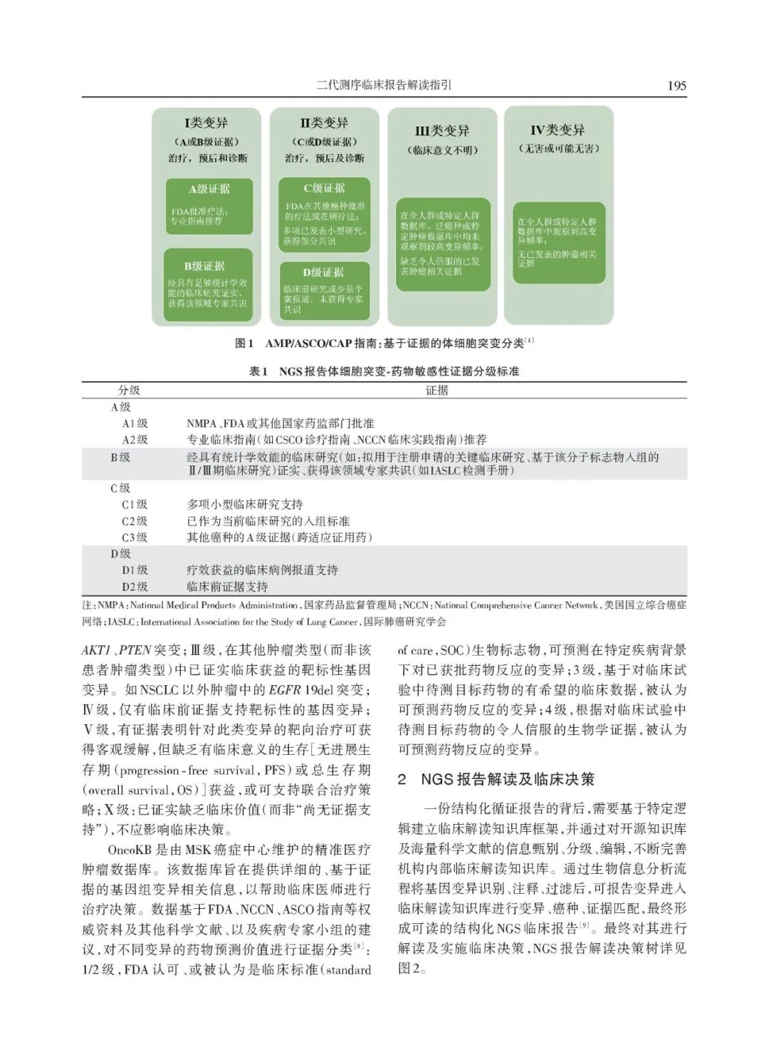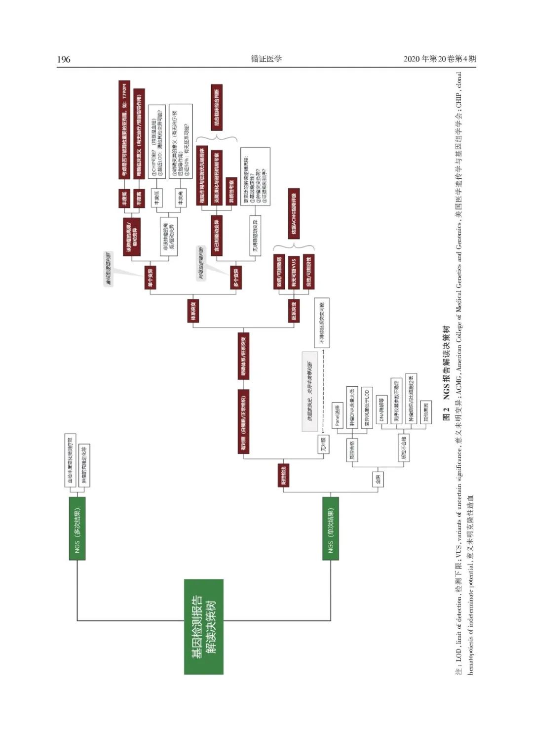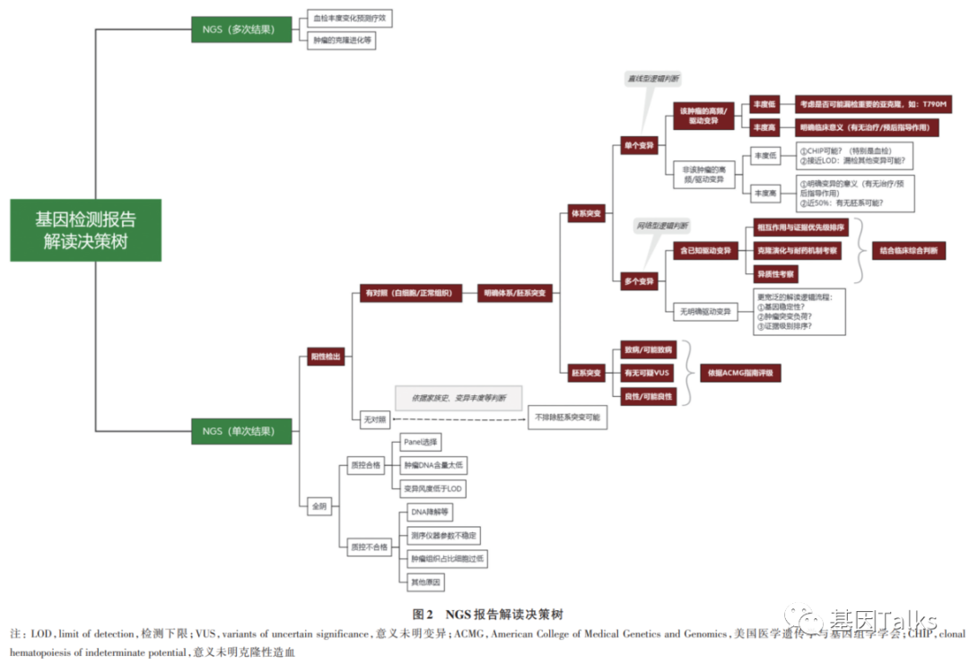 ⑴ 随着肿瘤分子检测领域的发展,临床药效的分子标志物将不再局限于单基因或单位点,包含更多基因和位点的NGS检测已逐渐成为肿瘤基因检测主流技术; ⑵ 2018年11月,JCO发表了一项美国肿瘤NGS基因检测调研报告,报告显示:75.6%的美国肿瘤医生都在使用NGS基因检测技术指导肿瘤治疗,超50%的美国肿瘤医生需要报告解读支持; ⑶ 2019年9月,CSCO肿瘤生物标志物专家委员会发布了一项中国肿瘤NGS基因检测调研报告,报告显示:95.4%的中国肿瘤医生愿意选择NGS基因检测技术指导肿瘤治疗,超30%的肿瘤科医生每月NGS检测量>5个,NGS已成为中国临床肿瘤医生常用检测工具,超90%的中国肿瘤医生需要报告解读支持; ⑷ 2021年3月,美国分子病理学协会(AMP)发布了一项调研报告,报告显示:对肿瘤分子检测报告的解(解)读(释),是缺乏的,分子检测领域的发展不仅推动了对检测的需求,也推动了对复杂结果解释和报告服务的需求; *对基因检测的需求越来越多;基因检测过程和分析变得越来越复杂;需要对基因检测结果进行个体化临床解读,特别是NGS大panel或WES/WGS;基因检测报告必须写得清楚,报告解读必须通俗易懂,让非遗传学专家,如临床医生或患者也能看懂; ⑸ 肿瘤NGS基因检测,『报告解读』是关键!它是精准医疗的关键“临门一脚”! ⑹ 2020年9月,CSCO专场卫星会上张绪超教授发布国内首个《NGS临床报告解读指引》,并对其进行解读,从临床靶点或驱动基因相关体细胞变异注释及解读、NGS报告解读及临床决策、可报告范围及质量控制等方面进行了详细介绍; ⑺ 对于医生来说,能否正确理解NGS报告的逻辑结构、抓取关键信息并综合分析,同时尽可能地避免过度解读对临床导至的潜在影响,决定了NGS检测能否为肿瘤患者带来真实的临床获益(当然不同基因检测公司的NGS报告逻辑差别可能会很大,但所有的报告都不应抵触药物说明书或专业临床指南); ⑼ NGS报告解读及临床决策:对基因检测结果进行生信注释并最终形成可读的结构化NGS临床报告,重点关注“全阴报告”,突变丰度及拷贝数,单个变异对比多基因多变异,胚系突变分级注释,及其他基因组标签的解读逻辑; ⑽ 可报告范围及质量控制:拿到肿瘤NGS报告时,应关注其样本主要质控参数、可报告范围(检测内容)、检测方法及其局限性等相关内容; ⑾ 2020年《循证医学》杂志发表《二代测序临床报告解读指引》(收稿日期2020年12月4日),全文内容如下: (下载点击左下角阅读原文,提取码: 8iad) 参考资料: 1.DOI: 10.1200/PO.18.00169 JCO PrecisionOncology - published online November 13, 2018 2.https://www.amp.org/AMP/assets/File/advocacy/AMP_MDx_Interpretation_Quant_Survey_Report.pdf?pass=14 3.二代测序临床报告解读专家组. 二代测序临床报告解读指引[J]. 循证医学, 2020, 20(4): 193-202. |