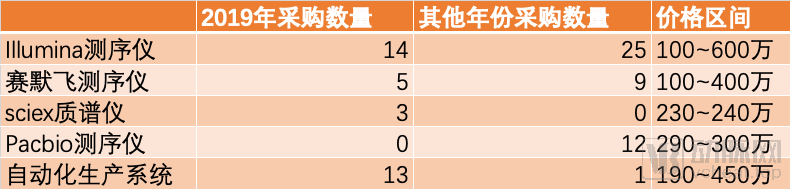 同样是2019年,诺禾致源用于构建固定资产、无形资产和其他长期资产支付的现金流从8109万增长到1.72亿,翻了一倍多。结合招股说明书提供的主要设备成新率和财务报表中的固定资产折旧安排,可以看出在这一年,诺禾致源的技术平台、自动化设备数量也近乎翻倍。诺禾致源列出的82款主要技术设备中,有35款是2019年添置的,占比42.6%。