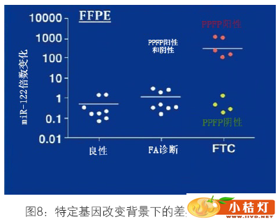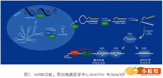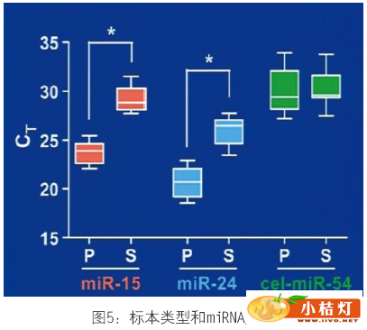 | 明尼苏达州罗切斯特市梅奥医学中心 分子检测用于诊断甲状腺癌还有进步的空间。2013AACC年会上Alicia Algeciras-Schimnich博士发表了题为“microRNA:甲状腺癌诊断的新兴生物标志物”的报告。本文从microRNA入门,microRNA作为疾病生物标志物和microRNA在甲状腺癌中的作用等两个方面展开描述。 一、microRNA介绍 microRNA(miRNA)是一类内源性的非编码RNA序列(包含18-24个核苷酸),调节基因表达从而控制细胞过程,包括细胞增殖、细胞分化和细胞凋亡。miRNA的特异性在于只通过24个核苷酸序列的6-7个核苷酸介导,所以单一miRNA可潜在识别上百个靶基因。大量研究表明很多疾病出现miRNA表达改变,包括恶性肿瘤。近期,据报告在体液(主要是血液)中发现的循环miRNAs是很有价值的疾病生物标志物。 miRNA基因通常是在核内由RNA聚合酶II 或 Ⅲ(Pol II或Ⅲ)转录成多茎环结构(primiRNA)。primiRNA在核酸酶Drosha和其辅助因子Pasha的作用下分裂成单茎环结构pre-miRNA。RNA–GTP和exportin 5(输出蛋白5)将pre-miRNA输送到细胞质中。 ![]() 输送到细胞质的miRNA被进一步处理为成熟miRNA分子(黄色表示)。成熟miRNA结合到RNA诱导沉默复合物(RISC)。成熟的miRNA结合到与其互补的mRNA的位点通过碱基配对调控基因表达。根据miRNA与mRNA的互补程度,可能发生两种情况。如果miRNA与靶位点完全互补,那么这些miRNA的结合往往引起靶mRNA裂解。与靶mRNA不完全互补的miRNA在蛋白质翻译水平上抑制其表达。三分之一的人类基因是以这种方式调节的。因此,通过miRNA这个微调机制细胞可以控制标准转录-翻译范例以外的基因表达。 ![]() 二、microRNA标志物 1、miRNA标志物的优势 如果miRNA的靶标是mRNA,为什么不用mRNA代替中间的miRNA呢?分析miRNA的优势在于:第一,miRNA比mRNA稳定得多。循环miRNAs可在室温下稳定至少24小时。大家普遍认为miRNA的稳定性是因为miRNA分子比mRNA分子小。还有大量研究表明内源性miRNA免于降解。第二,miRNA存在于很多组织和体液,分子小,易于提取。但是,很难从福尔马林固定、石蜡包埋(FFPE)组织中提取良好品质的mRNA。至于体液,miRNA不仅存在于血清、血浆,还存在于尿液、羊水、CSF等。第三,与成千上万mRNA相比,miRNA的数量有限[1852个前体,2578个成熟miRNA(miRBase,2013年7月11日)]。 2、miRNA标志物的劣势 为了使临床实践成功引入miRNA分析,有些问题尚待解决。miRNA浓度非常低,尤其在检测血清、血浆或其它体液,或者企图检测细针抽吸活检玻片的miRNA时,很难获得可靠定量。这个领域的不成熟性也不容忽视,技术问题包括分析前问题(溶血),miRNA提取,检测方法和标准化。 3、miRNA提取/定量方法的变异性 我们对miRNA提取,逆转录(RT)和实时定量PCR程序(qPCR)对miRNA定量变化的影响感兴趣。我们从捐赠者获得血样,分离血清,用基于吸附柱的miRNA提取方法一式三份提取血清。对每份提取物进行一式三份逆转录,然后进入实时定量PCR程序。一个miRNA共产生27个反应,3个个体共得出81个qPCR结果。 ![]() 3个内源性miRNA(miR-15b、miR-16、miR-24)与加入秀丽隐杆线虫的对照miRNA(celmiR-39)的批内差异如表1总结。每个miRNA的批内差异各不相同,但是大部分差异来源于提取阶段。外源性miRNA表现出最高批内差异。外源性miRNA不免于降解,降解程度和提取效率不同。因此,秀丽隐杆线虫miRNAs可能不适于作为外部对照。 ![]() 如图4所示,miR-16、miR-24、miR-122是内源性miRNA,cel-miR-39是对照miRNA。对于miR-16,25 mg/dL血红蛋白的△CT值是2,1200 mg/dL血红蛋白的△CT值增加到7。miR-24的情况与miR-16类似。miR-122和cel-miR-39不受影响。所以,溶血对某些miRNAs水平的影响显著。红细胞中浓度较高的miRNAs受溶血影响更大。 ![]() miRNA在血清和血浆中差异表达。图5是根据CT值与血清和血浆miRNA绘制的。CT值越小,miRNA浓度越高。血浆样品miR-15与miR-24水平显著高于血清。研究发现血浆miRNA水平较高是由于血小板污染所致。在这两种标本类型中外源性miRNA没有表达差异。该实验表明我们在临床实践中实施这些分析物时要注意血清和血浆样品是不可互换的。 ![]() 当前用于分析miRNA的方法主要分为3类,深度测序、微阵列检测和qPCR检测。对于试图发现新miRNAs和分析miRNA SNPs的实验,测序是技术选择。但是这项技术成本非常高而且数据复杂性也高。对于临床实验室人员来说,他们最多执行的是实时PCR检测,分析一小部分miRNAs。这样不能发现新miRNAs和SNPs信息,但是能够根据差异表达辨别良性或恶性样品。微阵列检测主要用于初始实验,在不同疾病阶段分析大量miRNAs。 ![]() miRNA在不同种类的癌症中上调或下调。不管癌症类型,总有一个常见miRNA上调和下调。例如,miR-21的生物功能是促进生殖,侵袭和迁移,所以在多种癌症中其调节是伴随恶性转化的。另一方面,miR-145在很多种癌症中因恶性转化而下调,与其作为肿瘤抑制基因的功能相符。 ![]() 大量miRNAs不仅是诊断多种癌症的标志物,还有其他作用,包括预后、治疗效果预测等。例如,在预后方面miR-196a-2表达上调预示胰腺癌存活率差,而miR-221和miR-222上调与乳腺癌病人抗他莫昔芬有关。近期Janssen等人在新英格兰医学期刊上发表的一篇文章表明miR-122的反义寡核苷酸使miR-122隔离从而抑制丙肝病毒复制,研究结果非常有价值。 ![]() 4、miRNA检测 市场上可购买到有限数量的mi RNA检测,针对细胞学或组织样品,尚无法检测体液循环miRNA。本文介绍两个产品,miRInform Pancreas和Rosetta Lung Cancer 