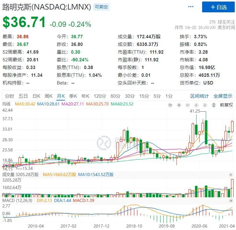 为什么3年前罗总和星哥认为Luminex会被并购呢? 股价一直低迷,作为一家备受国内IVD上市公司追捧的企业,市值长期在10亿美元以下,实在是令人发指; 资料来源:雪球 Luminex这几年营收3亿美元左右,增长乏力,净利率10%不到,也没啥分红; 单位:美元 资料来源:雪球 核心专利马上就要过期,竞争态势即将加剧; 另一方面,Luminex这个公司在技术上还是有些积累的,尤其是在荧光编码微球上,多重检测目前也比较火,以往的渠道也还不不错,横跨科研和诊断,免疫和分子通吃,品牌形象也还ok。