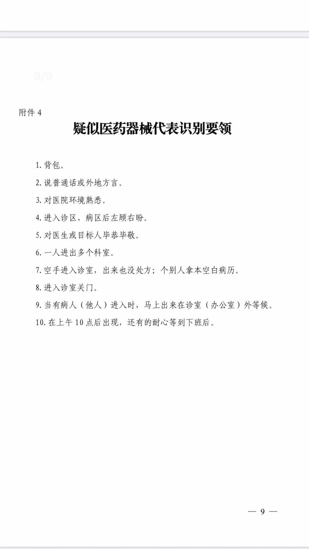 来源:医疗器械经销商联盟 日前,据医药代表大学公众号消息,浙江省某医院最新发布了一则通知。 通知中显示:按照清廉医院合作共建协议和医院相关规章制度,药械代表不得在医院诊疗区域从事药械营销活动,一经发现,按医院相关规定处理。如因代表身体不适需要就诊的,急诊于事后、平诊于事前应向医院纪检监察室备案,特此告之! 通知中,明确透露了两个信息:其一是药械代表不得在医院诊疗区域从事药械营销活动,其二则是如果出现药械代表身体不适需就诊的情况,应该及时向医院纪检监察部门备案。 此则消息一出,一时间在医械圈引起了热议,有医械代表表示,医院应该给予这个行业和工作应有的尊重,不能搞一刀切。更有甚者,一些医械销售直言,这种行为不就是赤裸裸的职业歧视吗? 事实上,自2021年开年以来,多位医械代表在医院被带走的新闻一直在医械圈内频频刷屏。 4月初,广州某医械代表在肿瘤医院进行拜访时,碰到了纪委,以为其是出门诊的教授,于是就直言了一些公司不太合规的政策,比如送他们公司检测有多少返点之类的。 来源:医蟹 值得注意的是,早在2020年的7月末,这家知名大三甲医院突击排查中,就已经查处了多位医械代表,直接交由保卫处带走调查。 事情起因是一位医院领导在巡查的时候发现,很多医药代表在科室走廊门口聚集,等候拜访,高峰时医药代表的数量甚至达到几十个,这种情况不仅违反了医院的管理规定,而且影响了医院就诊的秩序与环境。 随后,医院领导在会议上表示要严肃整顿,排查主要针对两方面: 一是门禁卡(住院部医生办公区进出是需要刷门禁卡的,不少代表为了工作方便,都会拿客户的卡去复制),医院安排了一些便衣保安蹲守在门口,逐个排查询问可疑刷卡进出人员。非病人或患者家属、非医院工作人员,一律要带去保卫处接受调查,并且要查出来是复制谁的卡; 二是针对病房用电脑查处方、查销量等行为,也安排了一些便衣在楼层巡查。 后来产生的结果是,不少代表进行正常拜访后也被带走调查了。 除了在医院被带走之外,此前中国监察网还公布了多起医械销售被警方逮捕的通知。 2020年9月30日,个体医疗器械销售代表甘某某和严某因涉嫌犯有行贿罪被吉安市公安局青原分局执行逮捕。 据悉,2006年7月至2019年8月,甘某某、严某挂靠具有销售医疗器械设备资质的公司,通过“投资合作”、政府采购招投标形式,向**县中医院、**县人民医院销售医疗器械设备12次。在此期间,甘某某、严某分13次共送给陈某某现金227万元人民币。 2021年2月下旬,个体医药代表徐某某行贿案披露,徐某某在代理销售药品过程中,为提高代理产品在无锡市新吴区**街道社区卫生服务中心全科医疗科的销量,违反国家规定,先后多次送给**社区卫生服务中心全科医疗科回扣共计人民币约212万。 最终,徐某某归案后如实供述了自己的犯罪事实,已被提起公诉。 2020年6月初,《医药代表备案管理办法》落地后,要求所有医药代表从业行为必须合规,药品上市许可持有人不得鼓励、暗示医药代表从事违法违规行为;不得向医药代表分配药品销售任务;不得要求医药代表收款和处理购销票据。 同时要求医药代表不得未经医疗机构同意,开展学术推广等活动;不得承担药品销售任务,收款和处理购销票据;不得参与统计医生个人开具的药品处方数量;不得对医疗机构内设部门和个人直接提供捐赠资助赞助。 文件颁发后,医药代表如果不按照相关规定完成备案,未来将难以在医院内开展相应的业务活动,无疑是直接催着药械企业将传统的营销模式进行转型升级。 事实上,现阶段各个地区为了消灭院内不合规的带金销售行为,已经相继出台了多项举措。 浙江省曾启动实施“刷脸进医院”,为了通过人脸识别进行医保支付、防止“医闹”的同时,另一个重要目的还是为了监控医药代表。 成都某医院也安装了智能安防系统,通过在医院各出入口部署高清人脸识别相机、出入口控制和报警系统,作为与医药代表备案制配套的重要举措。 更有甚者,广州某肿瘤医院要求,药械企业员工进院拜访时,首先需要通过钉钉系统按要求提交申请表,填写拟接待医药代表及其公司的资料、拟接待时间、拟接待地点、拟接待目的等信息;员工的接待申请由病区区长审批,病区区长的接待申请由科主任审批,科主任的接待申请由支部书记审批。审批结果抄送病区护长、医务处及监察室备案。并且,每次接待医药代表人数不得超过五人。 医药代表未经允许在门(急)诊、诊室、病房、检验科、设备科、 物流科、药学部和信息管理部门等诊疗重点区域停留或活动的,医院员工一经发现均有义务予以劝离,必要时可请保卫科协助,予以驱离。 针对药械代表医院拜访行为,网络上更是流传一份“疑似医药器械代表识别要领”,罗列了10多项医械代表身上可能出现的特征。 可以说,对于医械代表而言,正常进院拜访也已经成为了一件难上加难的事情。 但毋庸置疑的是,坚决斩断医疗领域腐败利益链是国家很长一段时间内的重点目标,致力于合规合法的市场环境无疑也将成为行业的主旋律。 附: 因行贿谋取不正当利益,情节严重的,或者使国家利益遭受重大损失的,处五年以上十年以下有期徒刑,并处罚金; 情节特别严重的,或者使国家利益遭受特别重大损失的,处十年以上有期徒刑或者无期徒刑,并处罚金