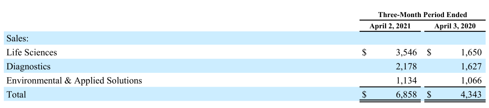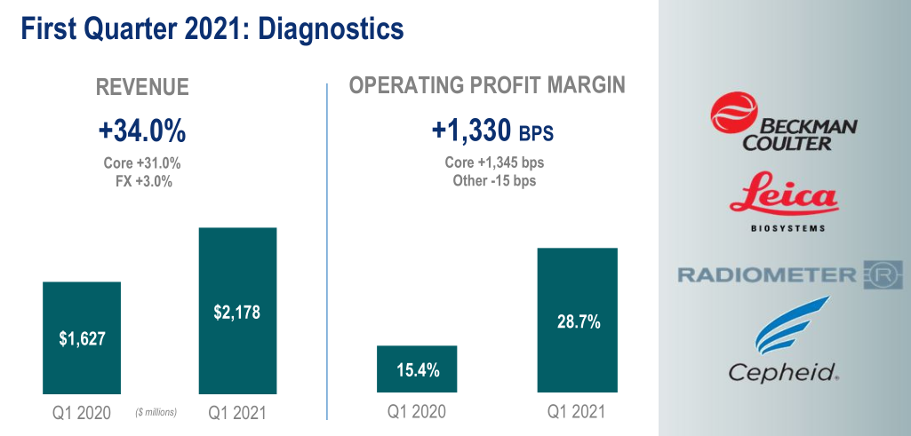 ▲丹纳赫2021财年Q1诊断业务营收