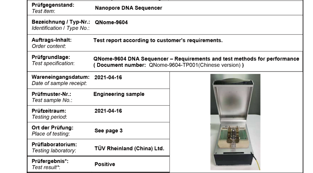 齐碳科技纳米孔基因测序仪产品通过TüV莱茵第三方检测