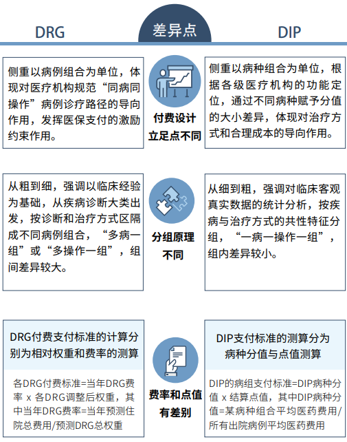 | 深化医保支付方式改革是党中央、国务院作出的重大战略部署,也是医疗保障制度自身发展完善、不断提高基金使用效率的必然要求。2021年是DRG和DIP两项医保支付方式改革试点工作的收官之年,也是试点经验总结推广的关键之年。DRG和DIP到底有哪些异同?两种支付方式改革在制度和技术方面各自的 优势是什么?通过对比梳理,带你读懂DRG和DIP的联系与区别。