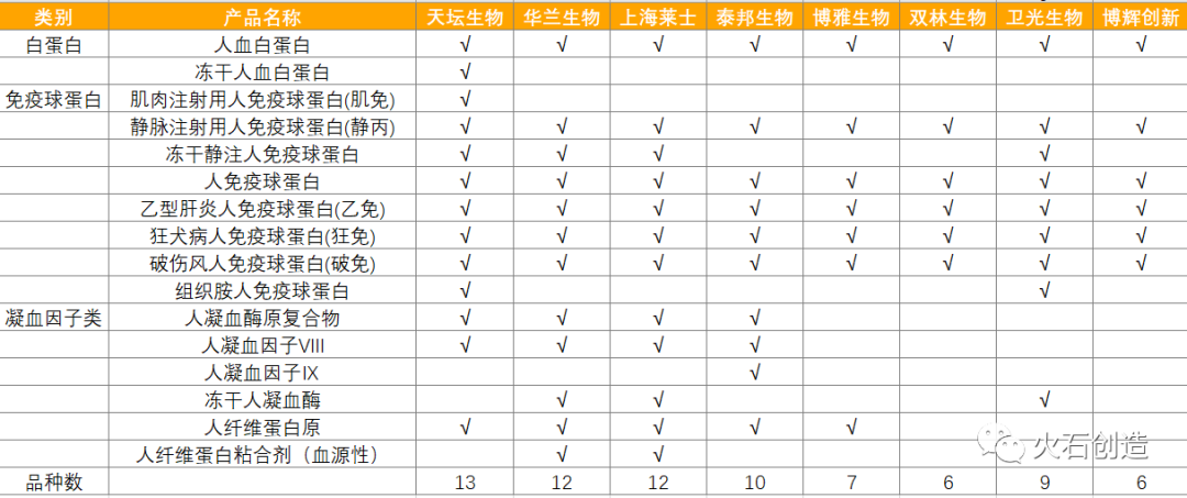 血液制品生产企业包括白蛋白、免疫球蛋白、凝血因子因子类、其它血浆蛋白类生产企业。其中免疫球蛋白可分为正常人免疫球蛋白(肌免、静丙、皮下注射用免疫球蛋白)和特异性人免疫球蛋白(狂免、破免、乙免、甲免等)。凝血因子类,包括人凝血因子、人凝血酶原复合物、人凝血酶、纤维蛋白原等,部分凝血因子如凝血因子Ⅷ、凝血因子Ⅶ、凝血因子Ⅸ目前可通过基因工程生产,以解决原料血浆不足的问题。