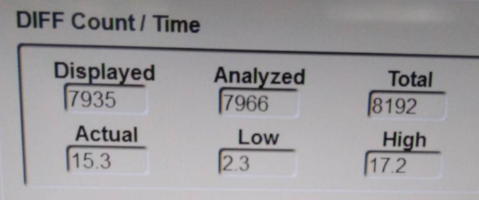 如果优化时间超过优化时间的50%,计数仍未达到 8192个颗粒,就会提示报警:Low Event D,而进入下一个样本的测试。如果优化时间低于优化时间的50%以下,也会报警:High Event D。