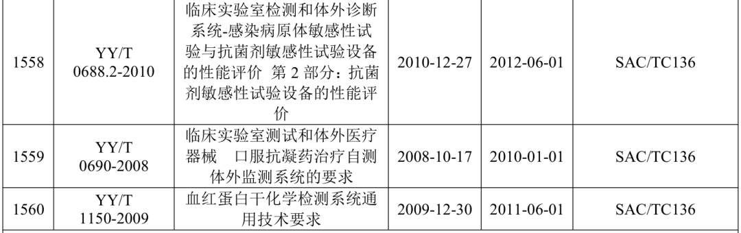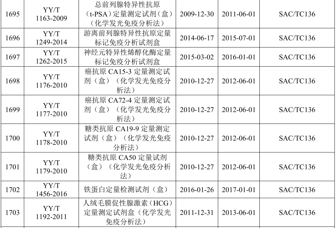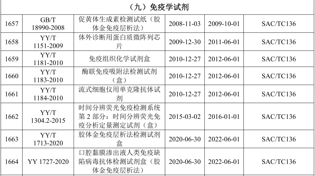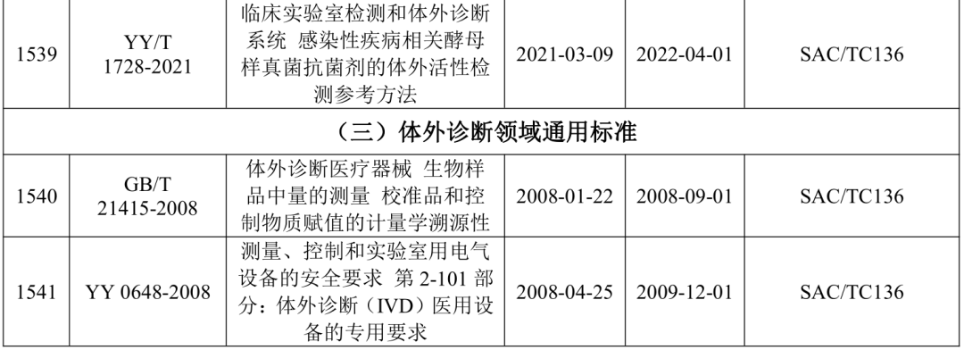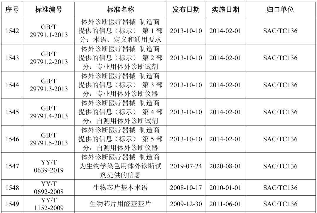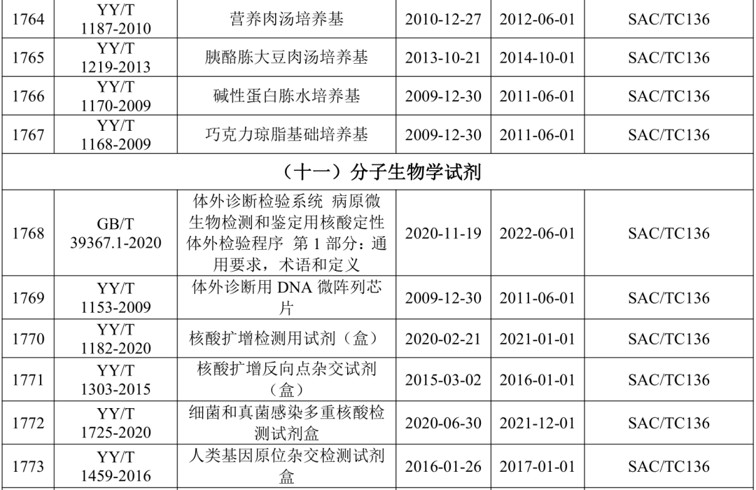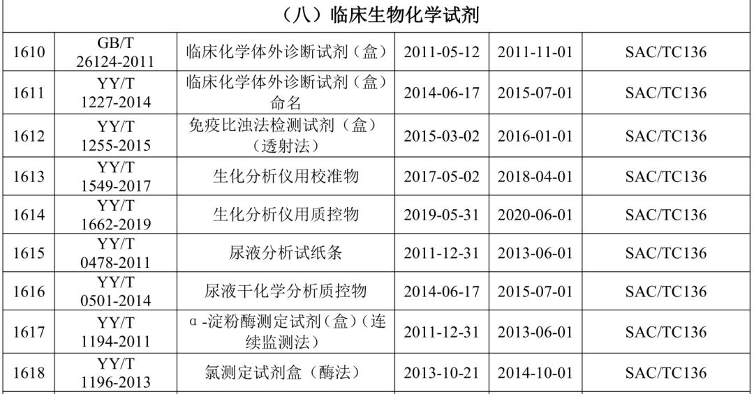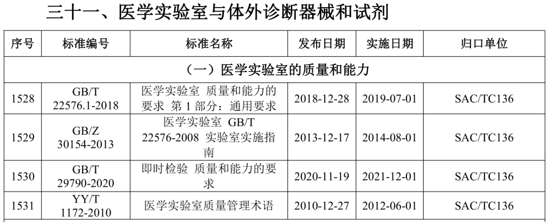 2021年5月21日,国家药监局医疗器械标准管理中心发布关于公开新版《医疗器械标准目录汇编》的通知。 为贯彻落实“放管服”要求,提高医疗器械标准可及性,国家药监局标管中心组织对现行有效1791项医疗器械国家和行业标准按技术领域,编排形成新版《医疗器械标准目录汇编》。 该目录汇编分为通用技术领域和专业技术领域两大类,通用技术领域包括医疗器械质量管理、医疗器械唯一标识、医疗器械包装、医疗器械生物学评价、医用电气设备通用要求、消毒灭菌通用技术及其他7个部分;专业技术领域又分为外科手术器械、医用生物防护、医用X射线设备及用具、医学实验室与体外诊断器械和试剂等32个部分 。 其中,医学实验室与体外诊断器械和试剂部分的标准如下所示: |
