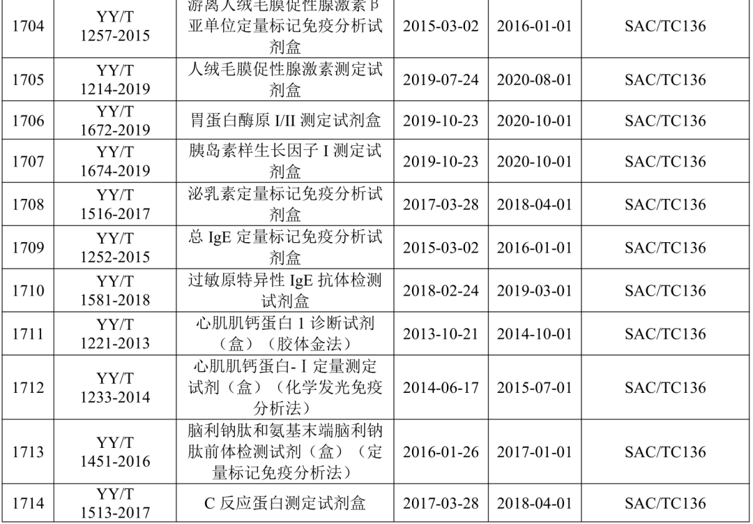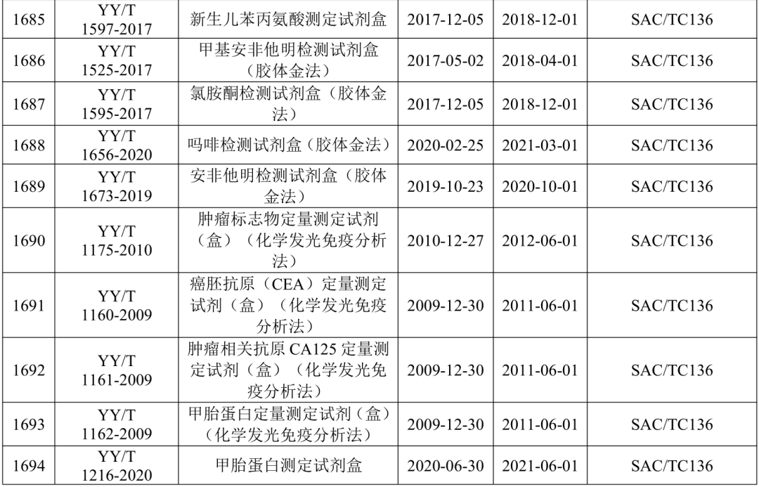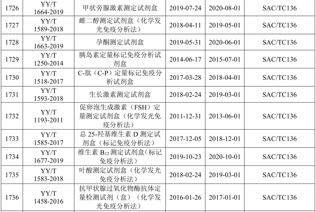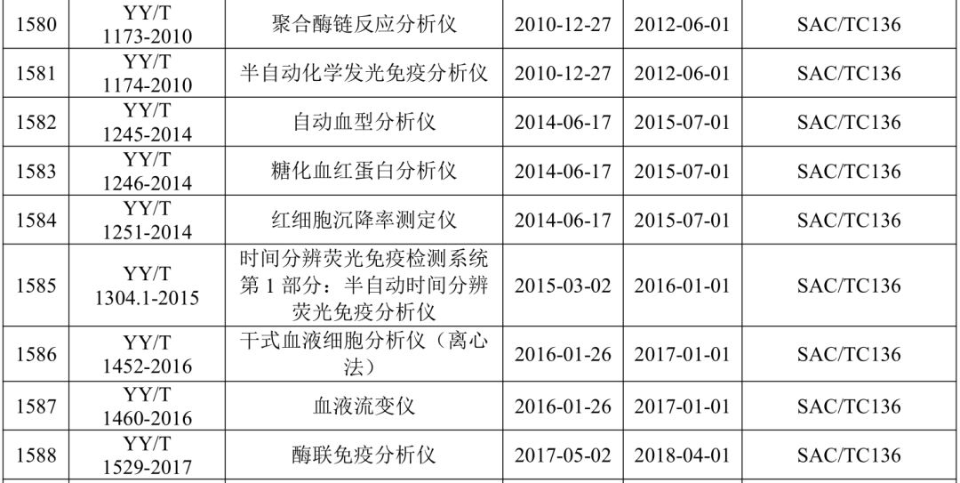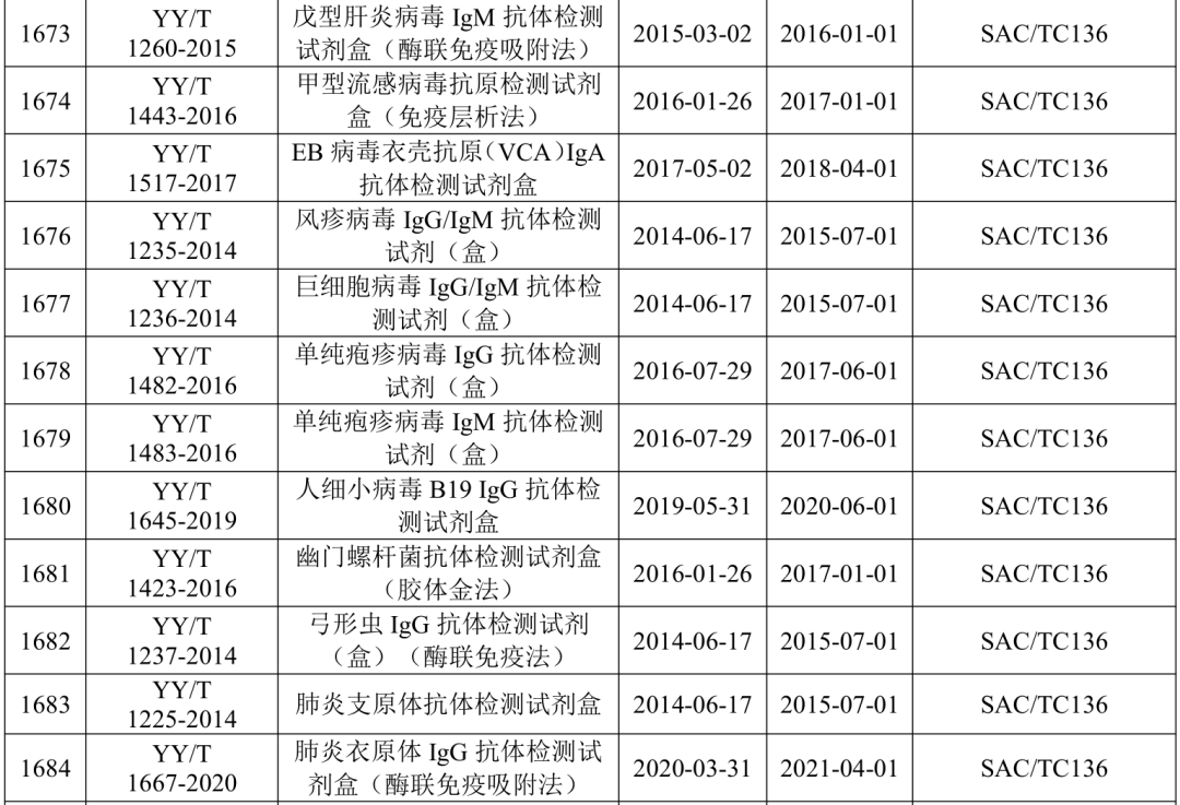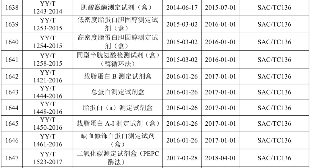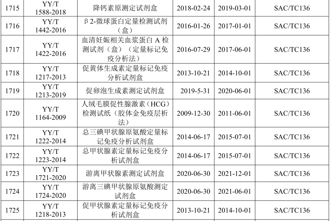 2021年5月21日,国家药监局医疗器械标准管理中心发布关于公开新版《医疗器械标准目录汇编》的通知。 为贯彻落实“放管服”要求,提高医疗器械标准可及性,国家药监局标管中心组织对现行有效1791项医疗器械国家和行业标准按技术领域,编排形成新版《医疗器械标准目录汇编》。 该目录汇编分为通用技术领域和专业技术领域两大类,通用技术领域包括医疗器械质量管理、医疗器械唯一标识、医疗器械包装、医疗器械生物学评价、医用电气设备通用要求、消毒灭菌通用技术及其他7个部分;专业技术领域又分为外科手术器械、医用生物防护、医用X射线设备及用具、医学实验室与体外诊断器械和试剂等32个部分 。 其中,医学实验室与体外诊断器械和试剂部分的标准如下所示: |
