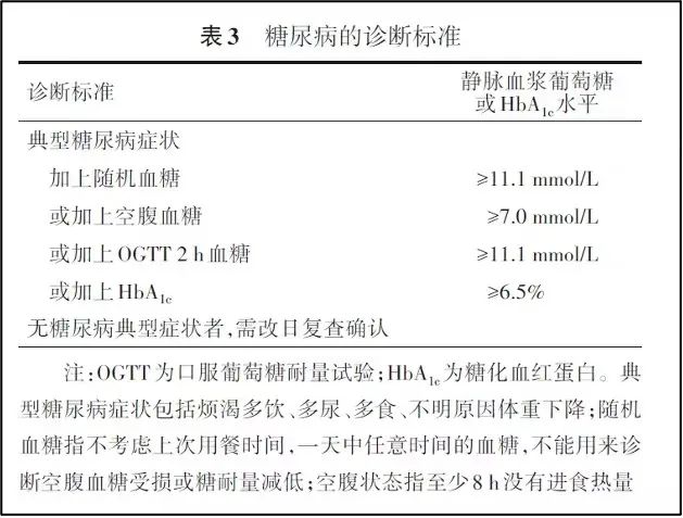 作为此次《指南》的重要更新要点之一,糖化血红蛋白(HbA1c)被正式纳入糖尿病诊断标准,《指南》明确指出:在有严格质量控制的实验室,采用标准化检测方法测定的HbA1c 可以作为糖尿病的补充诊断标准。《指南》中完整的糖尿病诊断标准如下表:
