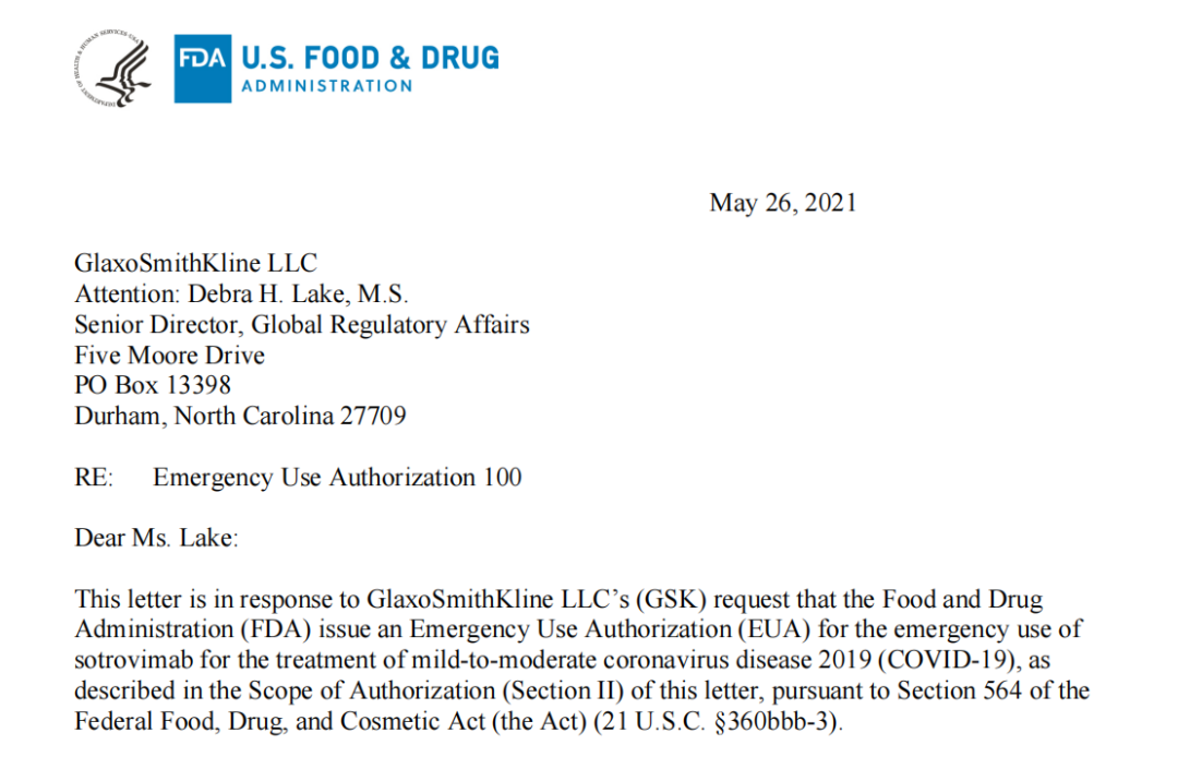 5月26日GSK和Vir Biotechnology宣布,美国FDA授予其新药Sotrovimab (VIR-7831)紧急使用授权(EUA),用于治疗新冠病毒检测为阳性、有高风险发展为严重COVID-19(包括住院和死亡)的轻度至中度成人和青少年(12岁及以上,体重至少40公斤)患者。 目前全球新冠疫情仍然严峻。截至北京时间5月27日6时30分左右,全球单日新增确诊病例585674例,新增死亡病例13244例。其中美国单日新增确诊病例超2.4万例,上万名美国人接种完疫苗后还是染上新冠。印度单日新增确诊病例超20万例,全球多地发现疑似印度变异新冠病毒。 目前,除紧急授权外,全球正式获批上市的新冠治疗药物仅有吉利德的瑞德西韦(静脉注射)。