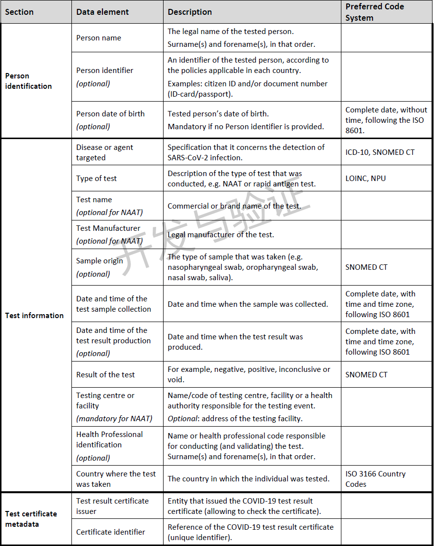 3. 在COVID-19检测结果证书中包含一套共同的标准化数据,进一步促进COVID-19检测结果的相互承认。