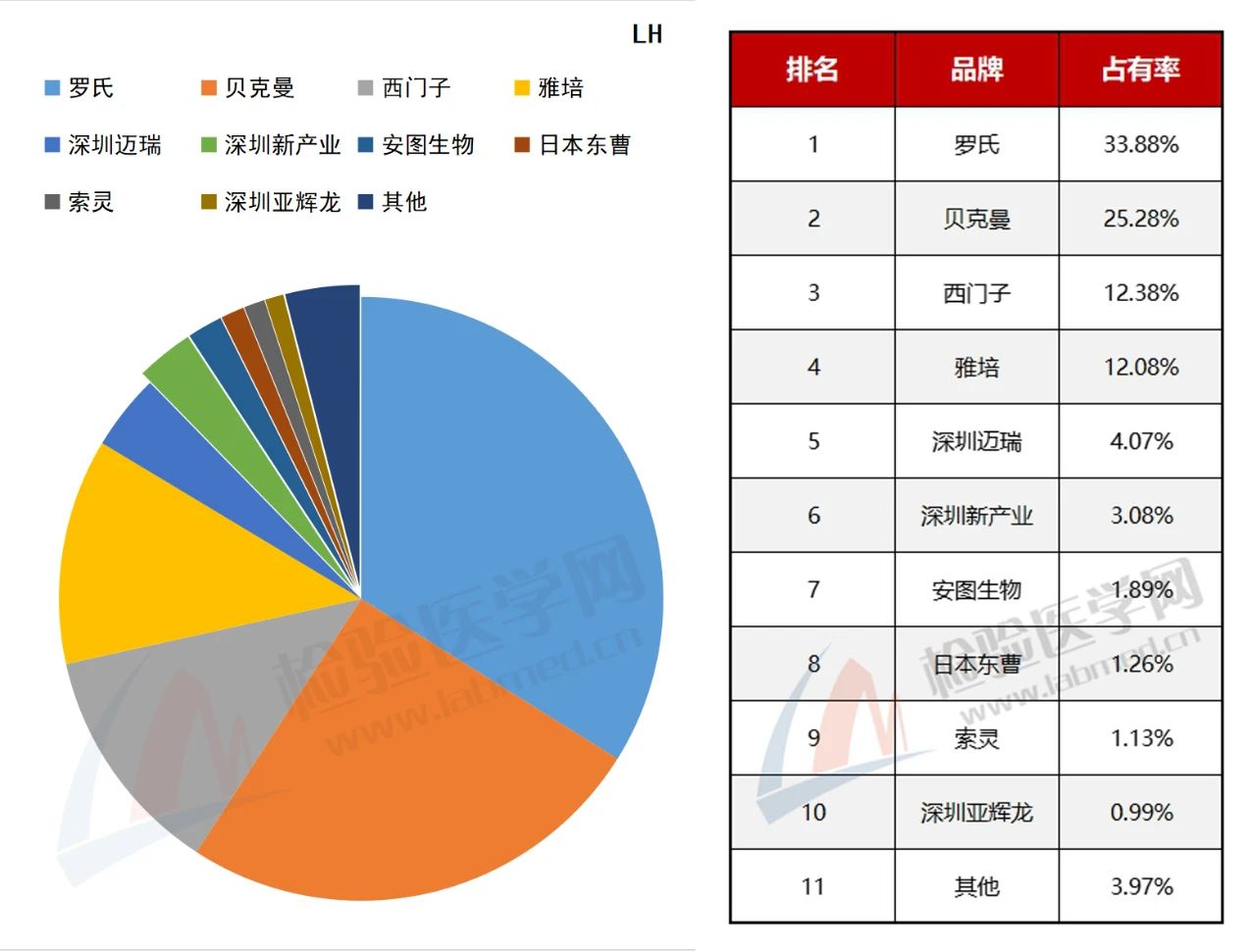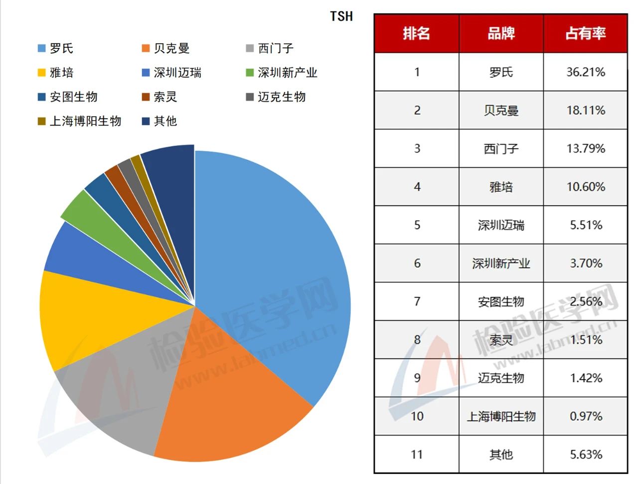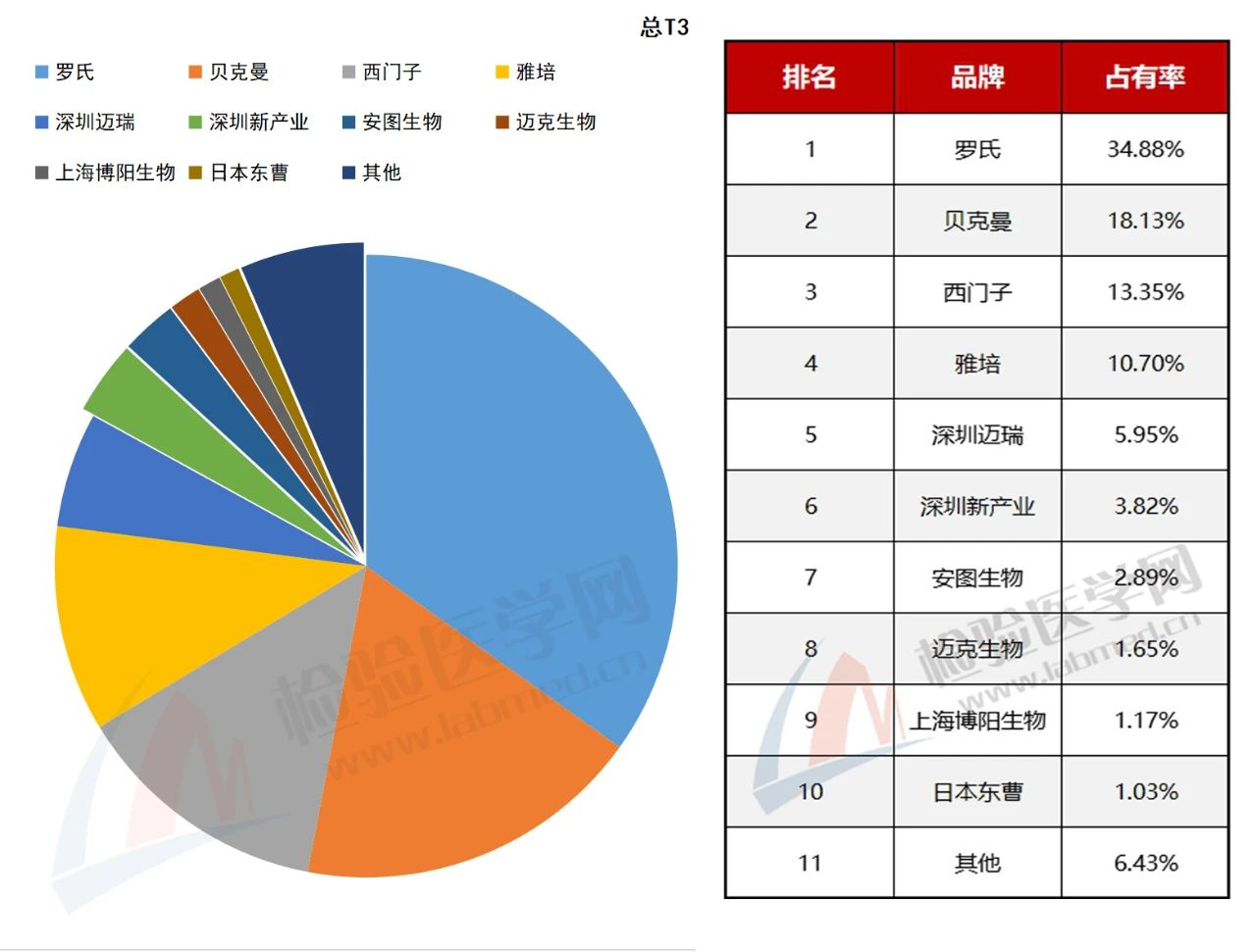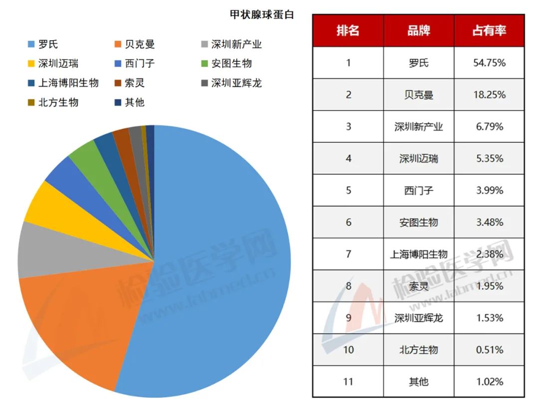 甲状腺功能检测 甲状腺是人体重要的内分泌腺体,其主要进行甲状腺素的合成、储存和释放。甲状腺功能紊乱或激素分泌异常可引起人体神经系统、循环系统、消化系统等多系统出现异常症状,甚至可以危及生命。早检测、早诊断,有助于甲状腺功能紊乱的及时评估及治疗。随着血清学检测性能的不断提升,血清标志物检测在甲状腺疾病诊疗中的应用价值日益凸显。 临床上,甲状腺功能检测指标包括促甲状腺激素(TSH)、三碘甲状腺原氨酸(T3)与游离T3(FT3)、反三碘甲状腺原酸(rT3)、甲状腺素(T4)与游离T4(FT4)、促甲状腺素受体抗体(TRAb)、甲状腺球蛋白(Tg)、甲状腺球蛋白抗体(TgAb)、抗甲状腺过氧化物酶抗体(TPOAb)、降钙素(CT)等等血清学指标。 性激素检测 性激素是人体内分泌出来的一种激素,对人体的发育有着一定的作用。但是,性激素的数值并不是完全固定的,每个人体内的性激素数值会有所不同。而且,人体在不同的时段性激素的数值也会有一定的变化,数值并不是固定不变的。性激素对不同性别、不同年龄段的人均有着重要的生理意义。 常规性激素六项检查包括:垂体分泌的促性腺激素—卵泡刺激素(FSH)、黄体生成素(LH)、催乳激素(PRL)、雌激素(E)、孕激素(P)、雄激素(T)。除此外,还有性激素结合球蛋白(SHBG)、17-A-羟孕酮、硫酸脱氢表雄酮等辅助检测。通过检测这些血清的激素水平,可了解女性的卵巢基础功能,并对男女生殖内分泌疾病进行诊断。 以下是统计了国内3000多家各等级医院检验科及独立医学实验室的检验、仪器试剂使用情况,以下数据截至2020年12月31日。 声明:1、凡本网注明“来源:小桔灯网”的所有作品,均为本网合法拥有版权或有权使用的作品,转载需联系授权。2、凡本网注明“来源:XXX(非小桔灯网)”的作品,均转载自其它媒体,转载目的在于传递更多信息,并不代表本网赞同其观点和对其真实性负责。其版权归原作者所有,如有侵权请联系删除。 3、所有再转载者需自行获得原作者授权并注明来源。 最新评论相关分类图文热点 最新文章