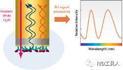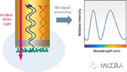 干涉检测技术(BLI,马赫-曾德尔干涉仪) 先来复习下基础光学知识,物理学中,干涉(interference)是两列或两列以上的波在空间中相遇时发生叠加或抵消从而形成新的波形的现象,光学上我们比较熟悉的当然是双孔干涉实验: 采用两条狭缝将一束单色光束分成两束后,再让它们在空间中的某个区域内重叠,将会发现在重叠区域内的光强并不是均匀分布的,会形成干涉条纹。 当一束光照射向薄膜,由于折射率不同,光会在薄膜的上界面与下界面分别发生反射,这两束反射光因相互干涉而形成新的光,这现象称为薄膜干涉。 由于光的波动性,两个界面的反射光可能干涉相长(强度增加)或干涉相消(强度减小),这取决于它们的相位关系。相位关系取决于两个反射光不同的光程,而光程取决于薄膜厚度,光学常数,和波长。 举一个生活中常见的例子,一个肥皂泡就是一个薄膜,但是它的表面厚度不均匀。而光是由不同波长的光波组成的,不同的颜色就从表面上反射出来,通过观察这些不同颜色我们就可以知道薄膜厚度的差异。 谭博士开发的生物膜层干涉技术(Biolayer interferometry,BLI)就是基于薄膜干涉原理的非标记检测技术。 未结合目标分子 结合目标分子后 通过在光纤末端修饰一层生物分子形成这层生物膜,白光照射过来后形成薄膜干涉,通过测量反射光光谱就可以发现不同波长的强度增加和减小。 当待检测分子被生物膜上的生物分子捕获后,这层生物膜厚度增加,导至干涉光波发生相对位移,通过检测光谱位移的大小Δλ就可以得知结合的分子多少。 https://en.wikipedia.org/wiki/Bio-layer_interferometry 除此之外,前段时间讨论火热的Antelope Dx的POCT新冠抗原检测产品则是一种采用了马赫-曾德尔干涉仪原理开发的无标记检测技术。 马赫-曾德尔干涉仪可以用来观测从单独光源发射的光束分裂成两道准直光束之后,经过不同路径与介质所产生的相对相位移动。 (Antelope专利图) Antelope Dx通过将马赫-曾德尔干涉仪微型化做成了光子集成电路,通过读取经过参考臂和传感臂的光波产生的相移就可以检测到传感臂上捕获的靶标分子。 笔者通过与光子芯片领域的大佬同学咨询后得知,目前如果要实现专利中这种干涉仪结构,批量生产条件下单片芯片成本大概在10块钱人民币这个量级,加上微流控部件,单个耗材成本也并不是高不可攀。 表面等离子体共振技术(Surface plasmon resonance, SPR) 入射光从一种介质A以临界角入射到另一种介质B时,在界面发生全反射现象,在介质B中会有消逝波产生。 当介质B为金属薄膜时,消逝波的横波与金属薄膜表面自由电子发生相互作用,激发表面等离子体波。 当表面等离子体波的波矢与入射光沿介质界面方向的波矢分量相同时,消逝波和表面等离子体波产生耦合现象,光能发生转移,此时入射光的能量被吸收,从而使全反射时的反射光能量大大减弱到一个极小值,此时对应的入射光波长为共振波长,对应的入射角θ为SPR角。 SPR传感器一般有两套检测方案,一套角度调制型SPR测量SPR角,一套波长调制型SPR测量共振波峰。 金属表面待测介质发生变化,引起金属表面折射率发生变化,影响表面等离子体波传播,使得共振峰或SPR角的角度发生变化。 波长调制型SPR 角度调制型SPR https://www.bruker.com/fr/products-and-solutions/surface-plasmon-resonance.html SPR传感器就是利用这个原理来进行检测的,将生物分子固定到金属薄膜表面,当生物分子识别并捕获目标分子后,作为待测介质的有效折射率会发生变化,通过计算SPR角或共振峰的位移,就可以得到所需的检测信号。 1990年Biacore公司研发了第一台商用SPR检测仪器,从此SPR传感技术逐渐应用于生物、物理、化学研究以及环境检测、食品安全等各个领域,并且发展迅速。 SPR的通量一般来讲不高,都是一个实验接一个实验的进行,如果需要高通量,目前可以通过表面等离子体共振成像技术(Surface plasmon resonance image, SPRI),即将光束扩束能覆盖整个芯片,芯片上类似蛋白芯片做区域划分修饰不同分子,检测器换成CCD相机就可以实现多分子同时检测。 (Analytical Chemistry, 2014, 86(17), 8857-8864) 简单的光路系统,使得SPR技术的POCT化是挺有潜力的。很多研究利用手机的闪光灯甚至是屏幕做光源,相机做检测器就可以实现生物分子的定量检测。 另外一点,SPR耗材的成本主要集中在芯片的这块,但是SPR芯片一般是可以重复利用,之前科研上都是洗脱、修饰重复使用,如果能做好耗材回收,可能这块也有一定的降低成本可能性。 (Angewandte Chemie International Edition, 2012, 51.46, 11585-11588.) 体声波(Bulk Acoustic Wave,BAW)谐振器 不同于前面两种光学传感器间接测量目标分子,BAW谐振器是一种直接的质量检测传感器。 通过施加交变电场,器件中的压电晶体会在电场方向产生形变,从而在压电振荡堆中激发了体声波。器件表面吸附待检测分子后,表面压力发生变化进而会造成其谐振频率的变化。 QCM是一种较为常用且十分成熟的体声波器件,利用了石英晶体的压电特性。 当石英晶振片工作电极上出现沉积、吸附等现象,发生质量变化,会导至石英晶振片振荡电路的输出电信号发生频率变化,从而可以通过电信号记录设备获得检测信号。 理论上来说可以测量到ng级别的质量变化。根据Sauerbrey理论方程,固有谐振频率为10 MHz,工作电极敏感区域为直径6 mm的圆石英晶振片,表面发生1 μg的质量变化,晶体谐振频率会下