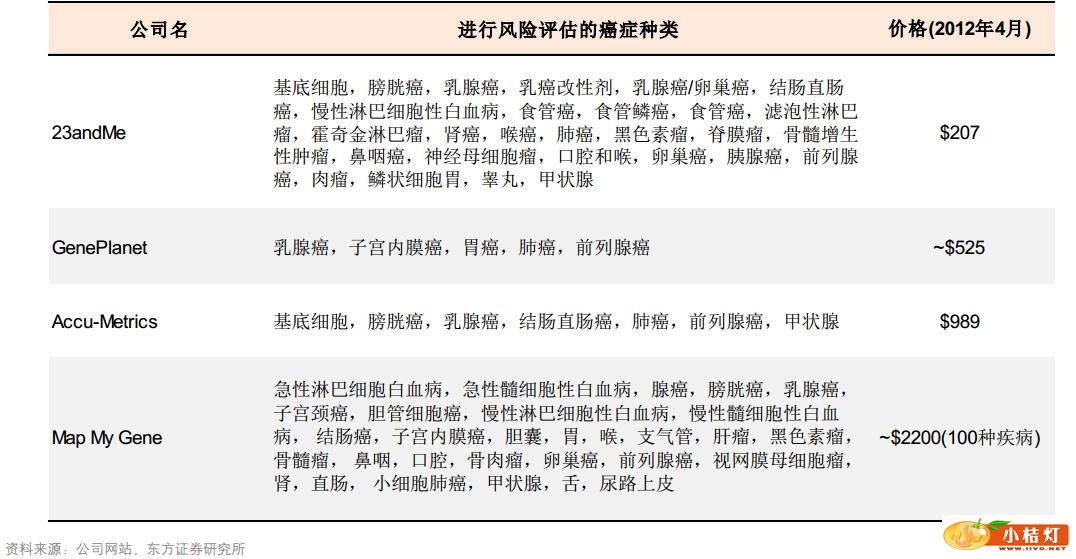 个人基因检测公司服务列表,图片来自公司网站、东方证券研究所 价格低廉、发展迅速 23andme采用的Illumina磁珠技术来生成基因型数据,使成本大幅下降。而为了占领这一市场23andme又把价格降得很低,目前仅为99美元。23andme的基因测序准确率高达99.9%,该公司2011年在PLoS ONE杂志上发表了一篇论文证明,其有能力分析用户的检测数据与相关遗传疾病之间的关联。此外,23andMe放开应用程序编程接口(API),为用户深究自己的基因提供了广阔的可能,也为开发者以及自身带来更大的价值。目前23andme主要的营销依靠口碑,通过社交网络迅速发展。 尽管去年11月被美国FDA勒令停止服务,但是我们从图表中可看到,23andme的用户人数仍在增加。有趣的分析也为其增加不少人气,如疾病分析,分为较高风险、普通风险和较低风险,并与全体人口进行基因致病风险对比;祖先分析,可以从父系、母系那里追溯源头进行有意思的分析,如喝酒会不会脸红,秃顶,生的孩子黑不黑之类的。