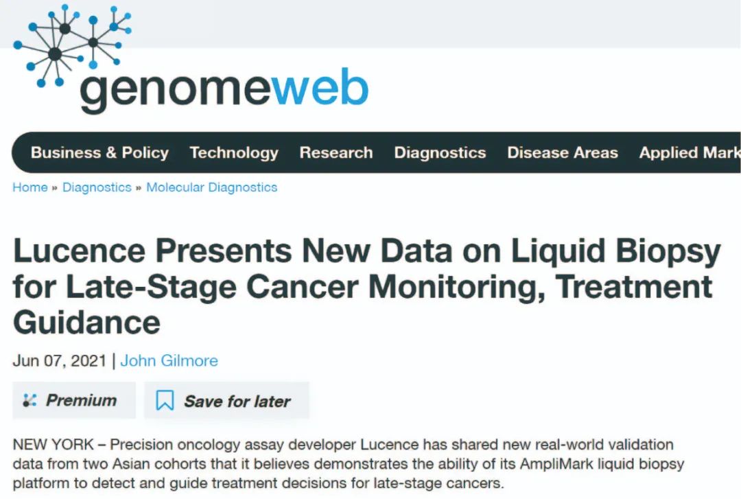 摘要: 近日,国际知名生物媒体GenomeWeb对路胜的首席技术官Yukti Choudhury和研究第一作者Wei Wu进行了深度采访,并报道了路胜在2021 ASCO年会公布的液体活检最新研究成果,以下文章转载自GenomeWeb。在前不久举行的美国临 ...
