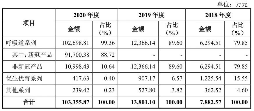 ▲来源:科创板 2021年6月16日,北京英诺特生物技术股份有限公司披露招股说明书(申报稿)。北京英诺特生物技术股份有限公司本次发行股票数量不超过3402万股,占发行后总股本的比例不低于25%,本次募集资金用于项目及拟投入的募资金额为: 体外诊断产品研发及产业化项目(一期),拟投入募集资金金额约3.53亿元; 体外诊断产品研发项目,拟投入募集资金金额1.4亿元; 营销及服务网络建设项目,拟投入募集资金金额约5874万元; 补充流动资金,拟投入募集资金金额4亿元。 英诺特是一家专注于 POCT 快速诊断产品研发、生产和销售的高科技生物医药企业,产品相比传统实验室检测产品具有使用成本低、操作便捷、检验快速、对配套仪器和操作人员要求低等特点。公司紧紧抓住当前社会节奏加快、分级诊疗体系不断推进、检测范围扩大、早诊早治趋势凸显等行业发展的驱动因素,扎根POCT 快速检测领域,以呼吸道病原体检测和多种病原体联合检测为特色,以急门诊,尤其是儿童急门诊检测作为切入点,致力于打造中国呼吸道病原体快速联合检测领导品牌。报告期内,公司的产品以呼吸道病原体检测为主,同时覆盖优生优育、消化道、肝炎等多个检测领域。公司针对呼吸道病原体感染的临床症状和体征较为相似但治疗方法截然不同的特点,重点发展呼吸道病原体联合检测产品,掌握多种联检技术,拥有多个国内独家品种,通过一个产品、一次检测快速准确地鉴别多种病原体,帮助医生尽早确定治疗方法和用药方案,在临床上具有重要的意义。2020 年,新型冠状病毒疫情在全球范围内爆发,公司快速响应,于 2020 年2 月 22 日通过国家药监局应急通道审批,获得国内首批新型冠状病毒抗体检测试剂盒注册证,并在国外取得了美国紧急使用授权 EUA 等多个准入许可。随着新冠疫情在全球范围内迅速蔓延,公司新冠检测产品的市场需求大幅增加,2020年公司新冠产品的销售额达到 91,700.38 万元,占 2020 年主营业务收入比重达到88.72%。受新冠检测产品收入的带动,公司 2020 年主营业务收入达到 103,355.87万元,较 2019 年增幅达 648.90%。此外,公司针对海外市场的需求特点研发了新冠抗原检测产品,并已取得奥地利、荷兰、德国、瑞典、葡萄牙、阿根廷、菲律宾等国家的准入许可。2020 年,公司产品销往亚洲、欧洲、北美洲、南美洲、非洲等70 多个国家和地区,凭借优秀的产品质量获得了客户的广泛认可,提升了公司品牌的国际知名度,进一步打通了销售渠道,为公司现有产品和新产品的推广销售奠定了基础。报告期各期,发行人分别实现主营业务收入 7,882.57 万元、13,801.10 万元和 103,355.87 万元。发行人本次拟申请公开发行不超过 3,402.00 万股人民币普通股(不含采用超额配售选择权发行的股票数量),实际募集资金金额将由最终确定的发行价格和发行数量确定。本次发行募集资金用途如下:英诺特以联合检测为特色,现有产品专注于呼吸道病原体检测领域。截至本招股说明书签署日公司已取得 64 项医疗器械注册/备案证,并搭建了6 大技术平台,拥有基于多种检测方法学的产品,从检测领域看,公司主营业务收入主要由呼吸道系列产品构成,报告期内,公司呼吸道系列产品收入占主营业务收入比例分别为 79.85%、89.60%和99.36%。来源:英诺特招股书