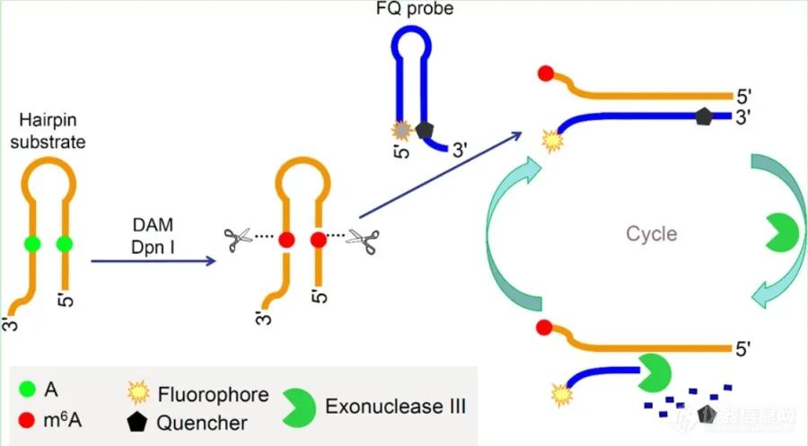 ▲ 基于外切酶的靶循环的DNA甲基化酶活性检测原理图