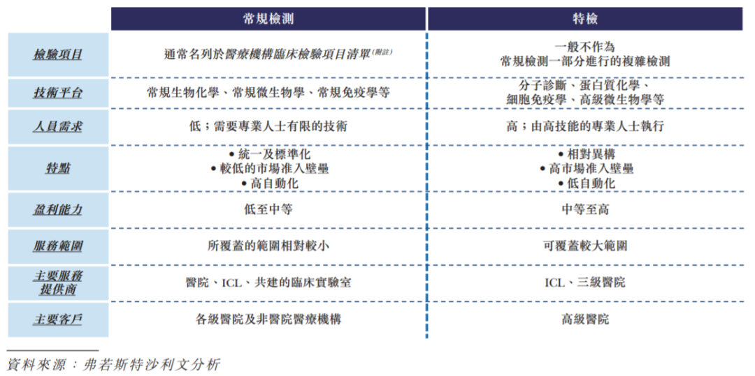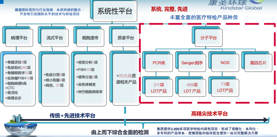 从去年开始,医保局在高值耗材领域“雷厉风行”的控费决心,使得部分医疗器械板块至今都没有缓过来,而间间断断的地方IVD集采的消息刺激,这股恐慌的情绪蔓延到了市场普遍认为较难集采的IVD细分。不管是DRGs/DIP,核心都是以病种、病案打包的形式进行付费。在此环境下,患者在医院看病,医保付多少钱,取决于患者检查的项目是否在医保范围内(治这个病固定多少钱,检查、耗材、人工等等都包含在内)来计算,这就意味着以前多余、重复不必要的检测会大幅度的减少,这样提高了效率,降低了成本,一定程度做到了医保份额最大化。 在相关政策下,明显长期受益的行业是第三方医学检验机构(ICL),一方面促使医院将部分或者全部项目外包给ICL,另一方面将推升国内ICL的渗透率。在新冠疫情和控费政策推动下,国内ICL龙头金域医学乘风起航,三年之内股价翻了4倍,可能有朋友说公司上涨加速是在2020年一季度开始,能有如此表现全靠发疫情财,但是不要忽视的是如果没有ICL外包渗透率提升的长期基本盘趋势保证,那么当下的估值极可能也无法维持。 下一个可能超越金域医学的公司在哪里?一家小而美的公司引起了我们的注意。6月17日,康圣环球通过港交所聆讯,ICL行业迎来了一家新的上市公司玩家。 公司简介:康圣环球成立于2003年,是中国领先的独立临床特检服务提供商。在中国所有独立特检供应商中,公司拥有最大的特检组合,在服务选单上提供超过3500种检验项目,包括约2300种血液学检验项目。 普检主要为常规化的、高频、大样本量检测项目(如生化检验、免疫学检验等),由于技术发展成熟、应用广泛,成本持续降低,医院更倾向于在院内进行。特检主要指自动化程度低、人力密集的检验项目,如基因组、质谱、病理等;往往该类项目结合多种检验技术手段,难度较大,所以更多会流出院外,外包至第三方ICL。1、特检为什么是ICL未来?数据、趋势已经说明一切政策面是否压制(医保控费)其实是一个大前提,与普检不同,特检项目主要为医保目录外项目,需要自费支付,控费压力小。院外市场方面,由于竞争门槛较高,竞争者主要以ICL企业为主,流通企业等参与较少。● 特检和普检的数据较量:先看市场增速,近年来我国特检市场的增长速度明显快于常规检测市场。据统计,我国特检市场从2015年35.29 亿元增加至2019年97.66亿元,年复合增速为29%。而我国普检市场从2015 年的57.4亿元增加至2019年113.83亿元,年复合增速18.7%。而2019-2024年,机构预测普检和特检的市场年复合增速为10.2%和19.8%。而在两者盈利难易度方面,以国内ICL龙头金域医学为例,金域的特检项目平均毛利率保持在50%左右,普检项目平均毛利率约30%-40%,高出普检项目10%。● 金域、迪安正在极力拓展特检业务:近年来,国内两大ICL也在加速布局特检业务,2020年尽管新冠疫情影响医院门诊和住院量,金域和迪安的特检业务占总营收的比重仍进一步提升,也印证了特检高增长的行业趋势。● 早筛产品兴起,特检市场注定爆发:随着人们消费水平、健康意识的提升,癌症早筛渗透率逐渐提升,市场也陆续涌现如诺辉健康、燃石生物等上市公司,而大多数肿瘤早筛产品由于需要做大量的回溯性、前瞻性试验,早中期大部分都通过LDT模式来进行销售,将来更多市场参与者共同教育并培育市场,有望进一步带动早筛渗透率的提升,进而带动特检市场的爆发。 康圣环球,这家早早就切入特检领域的老牌检验机构,相比于一些普检转型的ICL,无疑具备一定的先发优势。 ● 血液肿瘤特检的细分王者,有望将优势延伸至其他项目:以2020年营业收入计算,康圣环球是国内最大血液学特检服务提供商,占42.3%的市場份额(高出第二名50%),同时也是全球检测量最大的第三方血检中心,年血液特检量超过50万例次,2018-2020年营收分别为4.06亿、4.82亿和4.69亿。基于康圣在血液学特检构筑的领先优势,公司将利用其品牌影响力拓展至其他专科领域,其中罕见病、传染病、神经学专科的拓展较有成效,2020年分别拓展至735家、1281家、1106家医疗机构,2018-2019年年复合增速分别为28%、20%、35%。另外,ICL项目数量也是核心竞争力的重要体现,目前国内大型三甲医院通常可检测800-1000个项目,而美国Ques 等成熟ICL可以做4000+项,上市公司迪安诊断、金域医学可检项目数分别为2500个、2700个,而康圣环球则能够提供3500个可检项目,接近美国ICL巨头。● 国际合作能力卓越,检测项目开发能力较好:从技术平台看,公司拥有比较完整而前沿的技术平台(包括分子遗传学、流式细胞术、质谱学、解剖病理学等),而常规的分子肿瘤诊断如PCR、NGS、桑格测序等都涵盖在内。从研发人员构成和研发能力角度,公司特检团队由664名全职员工组成,64名硕士、25名博士,硕博比例为13.4%;研发团队方面,公司拥有253名研发人员,其中34名硕士、4名博士,公司成立以来内部已经开发1100种检验项目(每年100种)。由于管理层和机构股东背景,公司在国际合作有一定优势,例如早些年梅奥一直有转让部分检验项目给公司(合计100个项目),目前公司仍在使用这部分转让而来的项目,也给公司升级技术平台带来裨益。另外,公司在过去十年已经在多个前沿领域开展30+国内外合作项目,以开发行业先进技术。● 稳定的下游机构客户:据弗若沙利文数据,2019年三级医院占国内特检需求近70%,康圣环球与国内3000多家医院合作,大型三级医