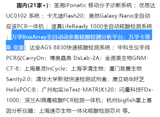 之前小钱做过一期文章,核酸检测POCT产品学习 idylla 图片来源:万孚官网 这里插一句,本文的easegen奕景www.wondfocartis.com和杭州的奕景生物www.intuitionbio.com不是一家公司,而今天我们要说的本款产品开发公司是easegen奕景又名万孚卡蒂斯,是由国内POCT行业领跑者的万孚生物与欧洲领先的分子诊断生物技术企业比利时Biocartis在香港成立的合资公司的全资子公司。 图片来源:万孚官网 从两种产品的图片看,从原idylla更改为“华佗一号”,不仅是名称的改变,连仪器的设计都已经改变,本次万孚携新面貌的“华佗一号”来参展全国第七届病原体核酸检测新技术高级培训班,好像充满干货,所以小钱就突然对此款产品产生了兴趣。 但是视频中称,本款产品研发耗时三年,首推产品为新冠流感三联检和新冠变异株多联检,检测范围可覆盖普通株 英国株 印度株 南非株 巴西株等主要流行的新冠病毒变异毒株,可针对新冠病毒S蛋白主要突变位点进行鉴定。本款仪器已经通过注册检,也就是产品即将临床验证或正在临床实验中了,万孚作为POCT的领导企业,宣传的内容应该是严谨的,估计年底之前应该能拿到注册证(视频中未提申报的是NMPA还是FDA等,从万孚卡蒂斯官网公布easegen奕景的idylla在2020.11.10就已经获得CE证。 那么万孚本次的“华佗一号”亮相到底是idylla的换个样子还是带着新技术的迭代产品呢? 图片来源:biocartis官网 图片来源:biocartis官网 这款产品,利用自主设计的POCT检测盒,基于real time-PCR技术实现核酸分子的检测。一体式 执行样品制备和 RT-PCR 扩增和检测所需的所有耗材都包含在装入 ldylla 系统的单个墨盒中。每个样品的处理时间不到两分钟,液密的一次性小柱大大降低了污染风险。而仪器则是打造一种模块化系统,可随时适应实验室的吞吐量。 图片来源:biocartis官网 此款产品的确是核酸检测POCT的代表产品了,能实现核酸的提取、扩增、检测的一体化,即样本进结果出,耗时90min按照目前市场上的普通PCR约120min的时间还是有一定优势的,而且声称的临产阳性检测率100%,但是POCT产品能真正做到替代普通PCR的还是有难度的,毕竟新冠过去后,客户能接受成本会下降很多。 03 idylla试剂盒(图片来源biocartis官网) 华佗一号试剂盒(图片来源:万孚官网) 从图片看,华佗一号在idylla的基础上做了改变,无论是仪器还是耗材试剂墨盒都做了改变,从视频的宣传,万孚耗时三年的研发,将idylla的耗时90min改进到60min,检测的病毒类型已经涵盖了目前常见的各种新冠变异性病毒,且试剂盒又是新冠流感三联检和新冠变异株多联检,假若宣传属实,华佗一号应该是万孚对idylla产品做了很大的技术改进,期待这款产品在市场上的表现。后续小钱也会继续去找这款的产品的其他资料,以对这款POCT试剂盒的技术获得更深入的了解。 www.wondfocartis.com www.biocartis.com |