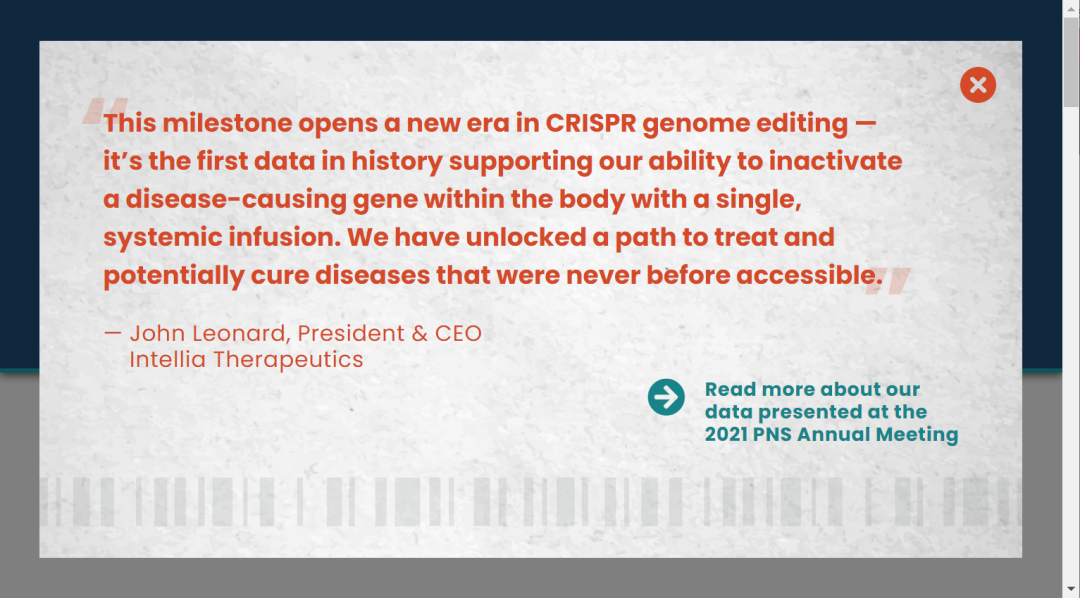 6月26日,Intellia Therapeutics和再生元完成了全球首个CRISPR基因编辑人体I期临床试验,数据显示CRISPR 可以直接在患者体内编辑基因。这是一个里程碑,可能为治疗数十种严重的遗传和非遗传疾病铺平道路。 因此,Intellia公司本周一开盘前,股价上涨了52%,市值增加了30亿美元。截至在6月30日,总市值已达到117亿美元。 其他的CRISPR公司,包括Vertex,CRISPR Therapeutics和Editas,股价都上涨了15%-25%。 这不是CRISPR第一次被用作一种疗法。CRISPR治疗已被应用治疗β-地中海贫血,甚至被用于癌症和艾滋病毒的治疗。 但在之前,研究人员都是先从患者身上取出造血干细胞,在实验室中编辑,然后将其返回给患者——这是一个更简单、更安全、更可控的程序。 然而,大多数情况都不能通过编辑体外的细胞来解决。一些破坏性的遗传疾病,如囊性纤维化和杜氏肌营养不良可以通过CRISPR基因编辑治疗,但前提是研究人员能够将治疗直接传送到患者身上。一些更常见的疾病也是如此。 而随着这项研究结果公布,基因编辑再次受到万众瞩目。 为什么这是一项里程碑式进步? 现在打开公司官网,先映入眼帘的是总裁兼首席执行官John Leonard的一段话: ▲“这一里程碑开启了 CRISPR 基因组编辑的新时代——这是历史上第一个支持我们通过单次全身输注灭活体内致病基因的能力的数据。我们开辟了一条治疗和潜在治愈以前从未接触过的疾病的道路。” Intellia Therapeutics公司于2014年在美国特华达州注册成立成立,公司的联合创始人之一生物学家Jennifer Doudna,在2020年因“开发基因组编辑方法”获得诺贝尔化学奖,是CRISPR基因编辑技术的开拓者之一。 Intellia Therapeutics公司主要业务是基因编辑,专注于使用 CRISPR/Cas9技术开发具有潜在疗效的专有疗法。Intellia认为,CRISPR/Cas9 系统能够通过单一疗程在人体内永久编辑与疾病相关的基因,这将改变医学治疗方式。 在2014年成立后不久,Intellia就开始着手转甲状腺素蛋白淀粉样变性病(Transthyretin Amyloidosis,ATTR)项目,ATTR是一种致死性罕见病,一种叫做转甲状腺素蛋白TTR的四级结构不稳定导至单体的异常折叠,进而导至组织内产生淀粉样物质积聚并破坏全身器官。 在随后的一项临床试验中,Intellia尝试利用CRISPR/Cas9治疗ATTR患者。 给病人服用包裹CRISPR/Cas系统的脂质纳米粒后,纳米粒携带RNA进入肝脏,表达Cas9,进而从ATTR淀粉样病患者的肝细胞中切除TTR基因。 试验结果显示,接受高剂量治疗的患者的蛋白质水平下滑80%-96%,这表明该疗法在需要的地方永久地切割了基因组。 这一成果近期发表于国际著名医学期刊《新英格兰医学杂志》。 这项技术一旦被证实,科学家就可以依托已有的基因编辑平台,将基因编辑技术应用到另一种疾病,所需的仅仅是把需要替换的一组致病基因换成另一组基因。 但这仅适用于部分疗法和疾病,毕竟不是所有疾病都有明显的致病基因,和研究清晰的疾病机制。 Doudna在一封电子邮件中说:“虽然这些是早期数据,但它们告诉我们,我们可以克服在临床上应用CRISPR迄今为止的最大的挑战之一,即能够系统地将其送到正确的地方。这是能够在身体的任何地方灭活、修复或替换导至疾病的基因的关键第一步。这为我们治疗迄今无法解决的疾病开辟了可能性。” 尽管目前这项技术仅能阻止疾病发展,但是负责人表示,公司正致力于通过改进技术和提高剂量逆转疾病,让身体有时间清理治疗前几年积累的畸形蛋白。 该公司计划寻求将他们用于ATTR治疗的基因编辑策略应用于治疗另一种遗传性血管水肿。 方兴未艾:基因编辑疗法 事实上,大家对CRISPR技术并不陌生,华人科学家张锋曾因为参与该技术研究被寄予厚望冲击诺贝尔生物学奖。该项技术发现于细菌内,为了抵御外来病毒侵袭,细菌进化出了独特的“发现——摧毁”机制,精准寻找并剪切目标基因,该技术目前已被广泛应用于生物实验中。 CRISPR被发现时,科学家曾设想通过其治愈大部分疾病。 但是有几个问题仍需解决,首先要证明它能在整个体内传播,其次,要证明其有效性,即可以将突变基因转化为健康基因。 本次Intellia Therapeutics的试验仅仅证明了CRISPR能在人体内直接复制,实现了致病基因有效剪切,对于更复杂的治疗要求还不能胜任,但仅仅如此,已经激起了医学界和投资界的广泛关注。 Intellia的有力竞争者,张锋创办的Editas Medcine在2019年7月25日,正式启动了CRISPR疗法AGN-151587 (EDIT-101)的I/II期临床试验,结果将于今年的9月份宣布,届时可能又会掀起一波基因编辑的热潮。 截至目前,国内的临床基因编辑治疗实施主体是各大医研院所和生物实验室。而受限于CRISPR技术的专利权,基因编辑疗法的商业化更是遥遥无期。 与之相对的,中国是第一个将CRISPR应用于临床试验的国家,《华尔街日报》更是在2018年发出“中国基因编辑技术或超越美国”的评论。