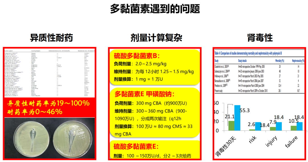 非常高兴与大家一起探讨关于耐药菌的治疗。大家知道细菌感染属于一个永恒三角,这个「三角」解决起来有点难。 最近世界卫生组织(WHO)联合世界动物卫生组织,以及联合国粮农组织,联手将抗菌药物统一命名为抗微生物药物(Antimicrobials),就是希望大家能合理地应用。但实际上如果真的要应用起来,其中的差别会很大。打个比喻:有人看到一幅落霞的美景,水面上有无数飞鸟,有水平的人也许会立刻吟诗「落霞与孤鹜齐飞,秋水共长天一色」,而到达不了那个水平的人看到这样的景色,只会大呼一声「这么多鸟!真好看!」这个比喻的意义是,每个人的临床思维,都会根据各人的眼界不同而有所不同,高水平与低水平之间差别巨大,这是由于抗菌药物的合理应用涉及很多方面,但我们最不希望是没有临床思路而只有临床「套路」。 碳青霉烯类抗菌药「倒下」后,能指望的是替加环素、多黏菌素、思福妥「三剑客」……但中国革兰阴性菌感染时「三剑客」也会遇到难以解决的困境 我们知道碳青霉烯类抗菌药是大家都认可的、到目前为止治疗严重感染最重要作用的药物。其结构特殊,与青霉素类的青霉环相似,但噻唑环上的硫原子为碳所替代,6位羟乙基侧链为反式构象,正是这个构型特殊的基团具有超广谱的、极强的抗菌活性,对β-内酰胺酶高度的稳定性以及毒性低等特点;其抗菌谱广:包括革兰阳性菌、阴性菌、需氧菌、厌氧菌均有很强的抗菌活性:公认为目前上市抗菌药物中的最强者;适应证宽:在多重耐药菌感染、需氧菌与厌氧菌混合感染、重症感染及免疫缺陷患者感染中发挥着重要作用。 可是大家知道碳青霉烯类抗菌药物是如何分类的吗?其实过去只有一类(即第二类),包括亚胺培南、美罗培南、帕尼培南、比阿培南、多利培南。后来出现了厄他培南,后者对非发酵菌无效,因此把它们分成了两大类(厄他培南为第一类)。但是所有这些碳青霉烯类再强也不能治疗MRSA,因此希望出第三类,能够同时治疗MRSA的碳青霉烯类抗菌药物。 看看现状:我们有前6种抗菌药物(中国没有引进多利培南),大家好像认为没有能够治疗MRSA的,但接着看,有了托莫培南和阿祖培南,这是能够治疗MRSA的碳青霉烯类。又有人说,碳青霉烯类只有静脉、没有口服的。有了,替吡培南,可以口服。又有人说,这些都是国外的,有我们自己国产的吗?也有了,百纳培南、艾帕培南。因此,碳青霉烯类抗菌药物在不断的发展当中。 这是2017年2月WHO首次发布12种致命耐药细菌清单。其中,被列为1类重点(极为严重)的就是碳青霉烯类耐药的鲍曼不动杆菌(CRAB),碳青霉烯类耐药的铜绿假单胞菌(CRPA),以及碳青霉烯类耐药的、产超广谱β-内酰胺酶(ESBL)的肠杆菌目(CRE)。我们叫它CRO。其中最难对付的就是CRE。 为什么CRE最难对付?因为CRE的问题在全球广泛存在,新定义纳入人群更广泛。 CRE的最新定义是什么?肠杆菌目细菌满足以下任一条件即为CRE:① 对任一碳青霉烯类抗菌药物耐药,亚胺培南、美罗培南或多立培南的最低抑菌浓度(MIC)≥4mg/L,或厄他培南MIC≥2mg/L;② 产生碳青霉烯酶;③ 对于天然对亚胺培南非敏感细菌(如摩根摩根菌、变形杆菌属、普罗威登菌属),需参考除亚胺培南外的其他碳青霉烯类抗菌药物的MIC。 上图可以看到鲍曼不动杆菌、铜绿假单胞菌、肺炎克雷伯菌对亚胺培南和美罗培南耐药的变迁(CHINET 2005-2020)。15年来,碳青霉烯类的使用量不断上爬,与耐药菌的分离率上升密切相关,近年来在严管管理之下,好不容易看到CRO的分离率终于有一点点下降。 针对77株CRE药敏结果数据显示:CRE对临床常用抗菌药物的敏感率均较低。问题在于碳青霉烯类耐药还有药用吗?放眼一看这个柱状图,全是「树桩子」。当然还4棵「树」,但实际只有两个药,多黏菌素和替加环素。四环素类治疗CRE,目前尚无理想的抗菌药物。因此我们应该思考,临床中针对CRE感染,应如何选择适当的抗菌治疗方案?碳青霉烯类抗菌药「倒下去」以后我们还能指望谁?一定是「三剑客」:替加环素、多黏菌素、思福妥。 看XDR、PDR肠杆菌目细菌的抗菌治疗,有多黏菌素(国内品种众多)和替加环素(剂量不断增加),磷霉素的联合治疗(多黏、替加、碳青霉烯类、氨基糖苷类),(头孢他啶、头孢吡肟、亚胺培南)+克拉维酸(对KPC有一定的抑制作用)?以及氨曲南+阿米卡星?(产金属酶包括NDM-1部分菌株仍对此2药敏感),头孢他啶/阿维巴坦(应用经验不足)。因此结论是:治疗CRE尚无理想的抗菌药物。 除了多黏菌素、替加环素,就是新出来的思福妥。这「三剑客」真能满足我们的要求吗?从抗菌谱分布图我们可以一目了然地看到,这「三剑客」的抗菌谱和抗菌活性各有不同。面对碳青霉烯类耐药,临床可选择的治疗药物非常有限。 而抗菌谱最宽的还是多黏菌素。再看看其他药物的缺点,替加环素的问题是剂量不足。即使是首剂200mg,然后100mg/q12h维持都觉得不够,国际上已经有用到150mg/q12h甚至用到200mg/q12,这真的管用吗?真不一定,但不良反应的增加却是一定的。 大家知道现在欧洲已经把替加环素的折点降到了0.5mg/L,如果我国也以0.5mg/L为折点的话,则耐药更为严重了。那就指望多黏菌素?但多黏菌素又有一个异质性耐药问题,它可以导至治疗失败,剂量计算起来又复杂,大家还担心它的肾毒性,所以它也有一定的局限性。 针对病原菌CRE、铜绿假单胞菌、鲍曼不动杆菌等,如何推
