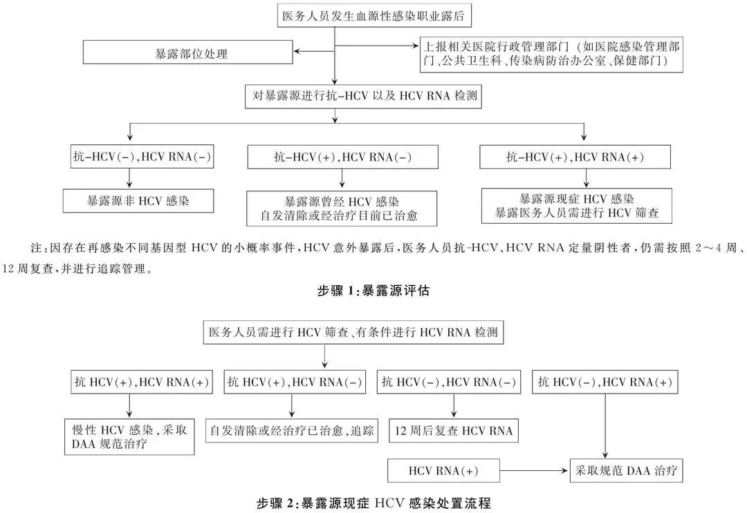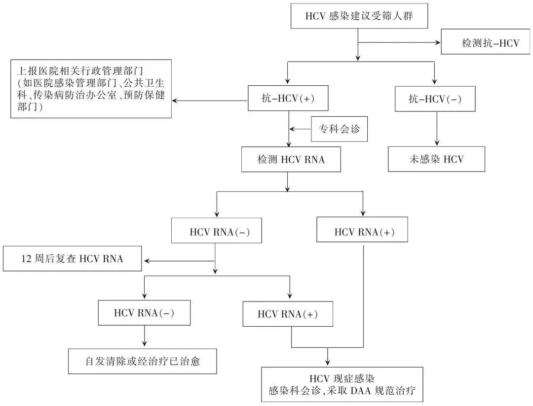 导读 丙型病毒性肝炎是严重威胁人民健康的公共卫生问题。目前尚无预防丙型肝炎病毒(HCV)的疫苗,但直接抗病毒药物(DAA)联合治疗可以治愈95%以上的慢性丙型病毒性肝炎。加强HCV感染者的筛查,针对确诊HCV感染者尽早进行有效的治疗,是消除传染源,阻断HCV传播的有效措施。 丙型病毒性肝炎 的医院感染防控措施 丙型病毒性肝炎患者(感染者)的筛查 医源性感染是HCV传播的重要途径之一,其对患者及医务人员的危害不容忽视。早筛查(发现)、早诊断、早治疗是阻断HCV传播的关键措施。为使有限的医疗资源发挥最大作用,应当在医疗机构内开展对高危人群等相关人员的普遍筛查。 1.筛查人群 (1)高危人群。如有静脉药瘾史者,高危性行为史,HCV感染者的性伴侣或家属,HCV感染母亲所生的子女,人类免疫缺陷病毒(HIV)感染者及性伴侣,有职业或其他原因(文身、针灸、穿孔等)所致的针刺伤者,破损皮肤、黏膜被HCV感染者的血液或体液污染者(如医务人员、急救人员或公共安全人员等),有医源性暴露史(包括手术、血液透析、不洁口腔诊疗操作、器官或组织移植者),有输血或血制品应用史者。 (2)准备接受手术和其他侵入性医疗操作的人群,包括输血或应用血制品者、各种有创导管及其他有创介入诊疗者,内镜检查者,血液透析者等。 (3)不明原因肝损伤者。 (4)医疗机构拟从事明确有经血传播或针刺传播风险操作的工作人员。 2.筛查时机与筛查项目 (1)高危人群应及早筛查,应检尽检;长期注射用药(药瘾)者应至少每6个月进行一次筛查;HCV感染孕妇分娩的婴儿,在出生后应在1-2个月复查HCV RNA,或出生18个月后检测抗-HCV。医务人员、急救人员或公共安全人员等被HCV感染者血液或体液污染的注射器针头或其他锐器刺伤,或黏膜暴露于HCV感染者血液、体液,应在发生职业暴露后48h内进行抗-HCV及HCV RNA检测;如均为阴性,则在1周后、2周后再次检测HCV RNA,12周和24周应检测抗-HCV、HCV RNA和肝生化指标。 (2)接受手术和其他侵入性医疗操作前;维持性血液透析患者首次血液透析前应进行抗-HCV检测,维持性血液透析治疗中抗-HCV阴性患者建议每6个月进行HCV感染筛查,转换血液透析中心或血液透析过程中出现不明原因的丙氨酸氨基转移酶(ALT)升高者应及时筛查。 (3)拟从事/从事明确有经血传播或针刺风险操作的工作人员,上岗前/例行年度体检应进行抗-HCV筛查。 (4)医疗卫生机构和体检机构宜在体检人员知情同意的前提下,将HCV相关检测纳入健康体检范畴。 3.筛查阳性患者的管理 医疗机构应根据实际情况建立多部门协作的HCV感染筛查和转诊路径,形成闭环管理。HCV感染筛查阳性者的诊疗程序见图1。 图1 HCV感染筛查阳性者的诊疗程序 首诊或主诊医生发现抗-HCV阳性者,应及时进行HCV RNA检测,没有条件检测的医疗机构,应适时转诊;HCV RNA阳性者应及时转至专科进行诊断评估,进行规范的抗病毒治疗;若暂不便转科者,可邀请专科医生会诊指导抗病毒治疗。 对于筛查结果为HCV RNA阳性患者,应按乙类传染病实行24h内传染病网络直报或传送传染病报告卡。发现HCV医院感染暴发事件应严格按照《医院感染暴发报告及处置管理规范》要求上报。 严格执行安全用血措施 HCV在医疗机构中的传播主要为血源性传播。患者如有输血或使用血液制品,血液制品的来源和使用应严格按照国家的有关规范执行。医疗机构应遵照《医疗机构临床用血管理办法》,健全临床用血管理制度,不断加强和改进医疗服务水平,大力推行节约用血新技术,推广合理用血先进理念和经验,规范用血标准,严格用血指征。加强患者血液管理,积极引导医疗机构开展创伤小、出血少、成熟可靠的微创手术,减少术中出血。推广血液保护技术,指导医疗机构推广自体血回输技术,减少异体输血和输血不良反应的发生,节约血液资源。 严格执行标准预防 标准预防是基于患者的血液、体液、分泌物(不包括汗液)、非完整皮肤和黏膜均可能含有感染性因子的原则,针对医院所有患者和医务人员采取的一组预防感染的措施。标准预防措施包括手卫生,根据预期可能的暴露选用手套、隔离衣、口罩、护目镜或防护面屏,以及安全注射;也包括穿戴合适的防护用品处理患者环境中污染的物品与医疗器械。强调双向防护,既要预防感染性疾病由患者传至医务人员,又要防止感染性疾病从医务人员传给患者。 安全使用和处置锐器 锐器不能直接用手传递,尽量减少搬运,使用或处置前不要弯曲或破坏针头,针头与注射器在处理前不得用手分解针头,无需重新戴帽,使用过的针头应就地放入利器盒收集容器,利器盒的装量不要超过标示的装量或四分之三,公共区域的利器盒不能放在地上而应放在安全的地方,重视预防针刺伤设施的使用。对针刺伤预防设施进行严格的评价,确定其效果及可接受程度,对患者护理的影响及成本效益进行分析。 加强血液净化中心管理 医疗机构内应加强血液净化中心管理,加强患者分区管理,应按照《医院感染管理办法》的要求,规范实施感染监测,及时发现感染病例和感染隐患,确诊传染病病例应在规定时间内及时上报。 维持性血液透析患者抗-HCV、HCV RNA阳性者必须分区分机进行隔离透析,并配备专门的透析操作用品车,护理人员相对固定;及时转诊或邀请专科医生进行诊断、评估及规范的抗病毒治疗。自患者HCV RNA检测结果首次报告转阴之