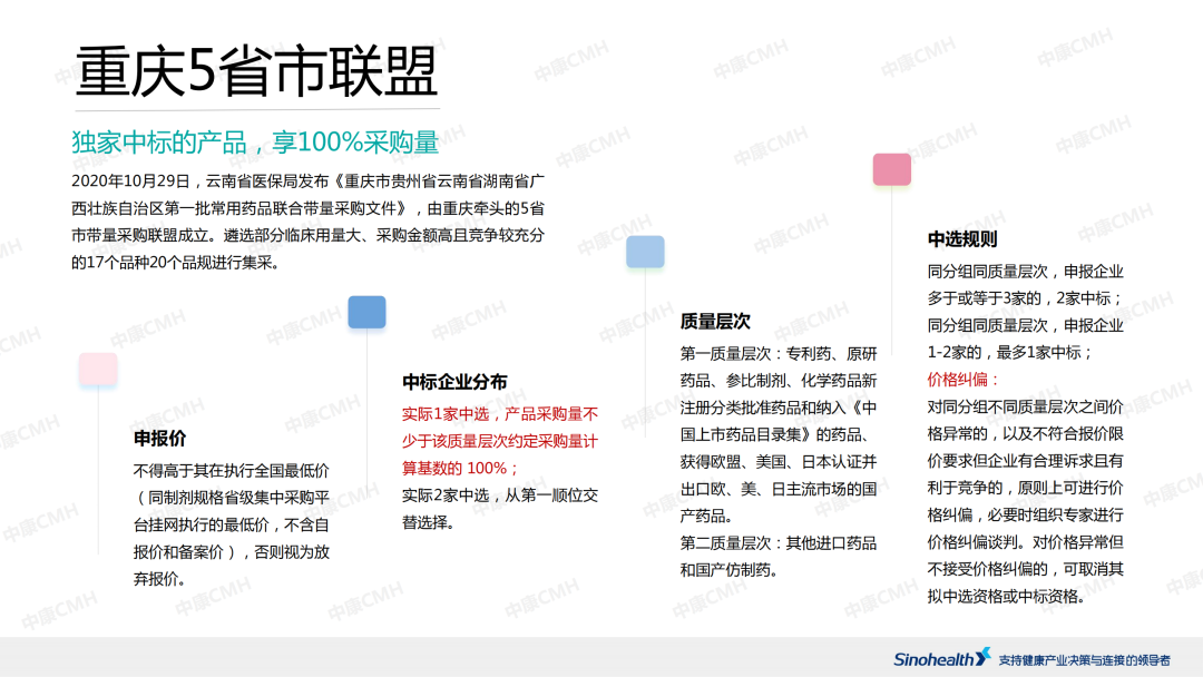 随着集采的深入,每一次政策调整和品种变化,都会给市场带来新的机遇和挑战,只有紧跟政策变化、强化市场应对战略,才能在集采的竞争中获得全胜。 |
