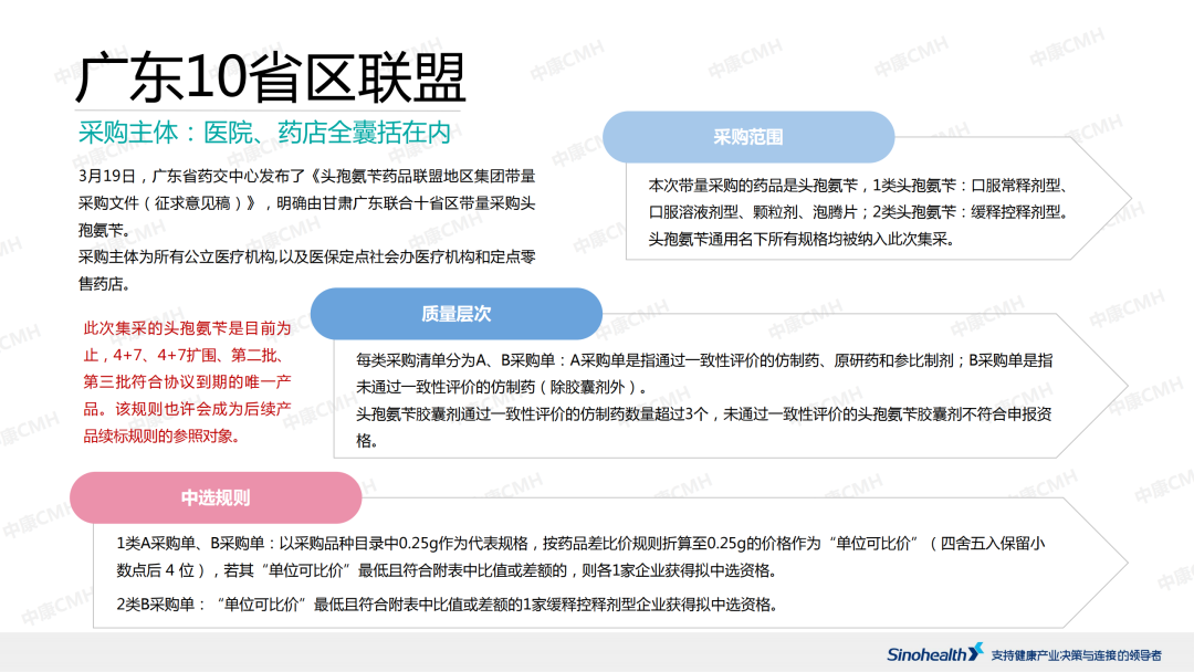 随着带量采购实施三年以来,“内蒙14省联盟”、“陕西10省联盟”、“六省二区联盟”、“四川7省联盟”、“广东7省联盟”等多个超大区域性联盟、跨区域性联盟相继试水集采,省际联盟逐渐成为带量采购主力军。 下面,我们整理了重点区域联盟的采购范围、中选规则、最新动态等信息,供业内一览。