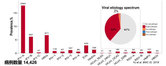 编者按 任丽丽教授和她的团队最早发现新冠病毒,在国内首批建立新冠病毒病原检测方法,疫情早期最早提出联合抗体检测显著提升新冠病例诊断率,也是率先提出食品冷链可能是病毒新型传播载体的团队。在2021 CACP年会中,任丽丽教授就呼吸系感染性疾病的病原学诊断的现状做出了分析,通过对急性呼吸道感染病例病毒组成谱和检出率的研究,对未来病原病因学的精确诊断技术做出了展望。 在最新发布的全球高疾病负担排行榜上看出,呼吸道感染仍然位于全球死因的前列(如图1)。引起呼吸道感染的病原具有种类多、变异频、含量低的特点,往往还存在复杂的共感染[1],使得呼吸道感染的病原检测诊断难度较大。因此,呼吸系感染性疾病的病原学诊断一直是呼吸系感染性疾病领域的重点和难点问题。 图1:全球高疾病负担排行榜 一、呼吸系感染性疾病诊断的现状 (一)病原学诊断的挑战 在呼吸道病原学诊断上的挑战主要来自四个方面:(1)病原种类多,但传统认知的感染病原种类有限,检测范围受限;(2)呼吸道作为开放的腔道,复杂人体共生微生物的存在会干扰检测结果;(3)新发或罕见人类感染病原的鉴别受到检测技术影响;(4)自然界潜在可感染人类的微生物识别尚不完全。 前沿技术的发展极大促进了对新发病原的认识,如「新冠病毒」等的发现和鉴定,提高了对病原谱组成的认知范围;人体微生物组研究领域的发展,丰富了对感染病原的认识,发现的特定呼吸道微生物组组成与呼吸道感染的关联,产生了可完善教科书的知识;但在病原学诊断中,复杂的人体共生微生物成为不可忽视的干扰因素。目前人类对于病原体的认知还比较有限,据估计全球有约100万种病毒,但已发现可感染人类的病毒仅有200多种[2](如图2),自然界中尚有大量的潜在感染人类的病原有待认识,这成为病原学诊断面临的巨大挑战。 图2 (二)病原病因学诊断能力提升感染性疾病诊疗能力 呼吸道是与外界直接相通的器官,每天吸入的空气中含有大量的微生物,部分可能成为感染病原。针对多种病原,能否第一时间确定其种类,完成病因学诊断,这是提升我们的感染性疾病诊疗能力的关键。国内外的呼吸道感染病原学研究表明,即使用灵敏的分子生物学方法筛查病原,也有近50%的病例无法找到明确病原学证据[3~7](图3)。针对不明原因感染,尤其是新发突发的呼吸道传染病疫情,能否第一时间鉴定到病原,对国家和社会安全则是具有至关重要的意义。 图3 (三)检测技术驱动病原学诊断的发展 病原学诊断的发展由检测技术来驱动的。回顾病原学诊断历史,从革兰氏染色和培养,到确证病原的科赫氏定律,发展到现代的PCR方法、Sanger测序法和下一代测序方法等,技术的进步使得感染病原学领域研究快速积累了大量的数据,促进了对感染病因学的认识。但是,在临床实践中,检测病原的收益等仍处于不断讨论和形成共识的过程中。 (四)病毒检测的临床收益 2021年美国胸科协会评估了疑似社区获得性肺炎(Community acquired pneumonia,简称CAP)的患者开展流感病毒以外的其他病毒的检测的临床收益[8]。认为门诊病例可做流感病毒检测,但对于流感以外的病毒,考虑到临床诊疗的收益不大,不建议进行常规的筛查。对于住院病例,推荐常规筛查流感病毒,不推荐常规检测流感病毒以外的病毒。对于重症CAP和免疫功能低下的人员推荐筛查是否存在其他的病毒以及支原体和衣原体等非典型病原体。上述不推荐常规筛查流感病毒以外的其他病毒,是由于循证的依据不足。因为是否检测流感病毒以外的病毒,对于是否缩短抗生素使用时长和住院时长,并无明确的临床收益。我国学者基于多中心的临床病原学研究认为非流感病毒在导至的疾病严重程度和临床转归上与流感病毒具有同样重要的作用[9]。观点存在争议的原因是由于该类研究设计还十分有限,进一步需要完善研究设计,更关注临床收益,通过数据积累增加证据强度。 虽然检测非流感病毒对门诊和住院的普通肺炎病例临床收益不显著,但在重症CAP患者,由于可能存在多种病原的共感染,也可能是流感病毒以外的其他病毒导至的重症感染,因此,对重症CAP患者增加流感病毒以外的其他病毒检测在抗病毒药物的使用方面,仍具有很好的数据参考价值。 明确病原谱,提供循证依据,才能促进呼吸道感染的精准诊断。因此,感染的病原病因学诊断是临床诊断的重要参考依据已经是共识;但对流感病毒以外的其他病毒的检测的收益方面,仍需要更多的呼吸道感染病原学研究数据的支撑。 作者所在的课题组在呼吸道感染病毒病原学方面开展多年的研究,目的是为改变临床实践提供数据参考。我们提出的问题一是门诊急性呼吸道感染和成人CAP患者,除了检测流感病毒,其他病毒有无增加的必要?二是对于轻症的成人CAP患者,是否有必要检测多病原,检测频次如何?三是对呼吸道局部微生物组特征的认识和分析,能否作为呼吸道感染潜在的新型的生物标识? 二、急性呼吸道感染病例病毒谱 (一)研究设计 急性呼吸道感染病例病毒组成特征是什么?通过与全国的同行合作,基于统一的病例入组标准,统一的操作规程和检测方法,开展样本的采集和病原检测(如图4)。 图4 门诊患者常见的呼吸道病毒感染种类包括流感病毒(IFVs A/B/C)、副流感病毒(HPIVs1/2/3/4)、呼吸道合胞病毒(RSV-A/B)、人冠状病毒(HCoVs),人偏肺病毒(h
