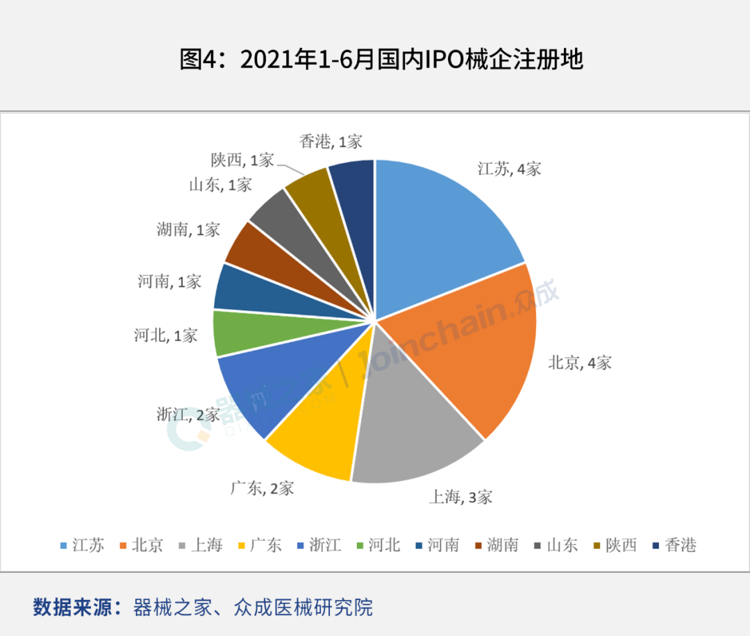 | 联名发布:器械之家/众成医械-医械数据洞察 医疗器械作为注册制改革受益最大的板块之一,也是资本市场长期以来的热衷领域。对此,专业医械信息服务门户「器械之家」联合「众成医械」,以旗下数据创新服务平台“医械数据洞察”为数据支撑,全面盘点了2021年上半年IPO的医疗器械企业,并分析械企IPO的特点。 自科创板、创业板依次推行注册制后,医疗器械企业开启了上市潮,2019年、2020年分别有16家、21家械企上市,较以往平均每年5家企业上市的速度明显加快。 进入2021年,医疗器械企业IPO进程仍在提速,随着国内骨科器械巨头——威高骨科于6月30日登陆科创板,2021年上半年国内医疗器械企业上市数量达到21家,与2020年全年上市械企数持平。 国内械企IPO浪潮持续高涨 从1997年第一家医疗器械上市到2021年6月30日,已有123家医疗器械企业成功上市。我国医疗器械企业上市情况可以分成3个阶段:第一阶段为1997-2008年,以每年1-2家的数量上市;第二阶段为2009-2016年,在创业板上线后,以每年5家左右的数量上市;第三阶段为2017年至今,医疗器械企业上市速度加快,每年械企上市数已升至两位数。 近几年医疗器械企业上市速度加快,尤其是科创板上线后,医疗器械企业纷纷扎堆IPO上市。这背后,市场规模快速增长、资本越来越青睐医械企业、市场竞争激烈迫使相关公司募资、科创板加速行业资本化进程等是近年医疗器械企业上市提速的主要原因。众成医械统计发现,2017年国内有14家医疗器械企业上市,2018年受宏观政策环境原因只有4家上市,2019年后械企上市加速,当年16家上市,2020年有21家械企上市。在此基础上,2021年IPO浪潮依旧高涨,上半年上市械企数已达到21家。 2021年1-6月,共有21家国内医疗器械企业上市,其中科创板15家、港股5家、创业板1家。可以看到,科创板是医疗器械企业上市的首选板块,占今年上半年上市医械企业的71%。 今年1-6月,医疗器械企业每月上市数保持平稳,月均上市数在2-5家范围内,除1月和3月外,其余月份均以每月3-4家的速度上市。 IVD和高值耗材企业占八成 从主营业务上看,2021年1-6月上市的医疗器械企业中,有11家为体外诊断领域,6家为高值耗材领域,3家医用医疗设备领域,1家低值耗材领域。体外诊断与高值耗材的企业上市数占上半年械企上市数的81%。 在细分方向上,上半年IPO的体外诊断企业中,分子诊断领域的企业数最多,达到5家,免疫诊断领域为3家,POCT、体外诊断原材料、体液诊断领域均为1家。 上半年上市的高值耗材企业中,骨科耗材和心血管介入耗材领域分别有2家,口腔高值耗材领域1家,神经外科耗材领域1家。 苏北上三地总上市数占比超50% 从注册地来看,江苏、北京、上海的上市医疗器械企业最多,分别为4家、4家、3家,占今年上半年上市医疗器械企业数量的52%,广东、浙江均为2家,河北、河南、湖南、山东、陕西、香港均为1家。 |