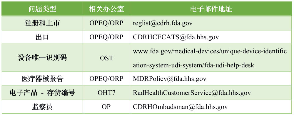 这是FDA新手课堂第十三篇,太平老师将在这里介绍如何从设备和放射健康中心(CDHR)中获得你所需要的信息。 在介绍CDRH的组织架构时,我们已经涵盖了很多内容,也提到了很多不同办公室和它们职能,那么,你现在最想知道的,应该是我如何能利用这些信息来解决我的问题? 如果您有任何一般性问题,可以从工业和消费者教育司(Division of Industry and Consumer Education,简称DICE)开始。如果你想得到即时的反馈,你可以拨打以下这个电话进行现场对话。 电话号码是(800) 638-2041,可以在上午9点到12点30之间,下午1点到4点30之间拨打。 或者,你可以给发电子邮件,来获得书面答复。DICE通常会在两个工作日内给出答复,其电子邮件地址是dice@fda.hhs.gov。 如果你还想了解更多信息和教育资源的链接,可以点击DICE主页,www.fda.gov/DICE,来寻求帮助。 DeviceAdvice,是为你在设计自己设备时,所可以使用的优秀资源之一,它是一个关于医疗设备的全面的监管教育资源,它由数百页的网页内容组成,涵盖了关于医疗器械的整个产品生命周期,涉及30多个监管类别。 在DeviceAdvice的网站中,包括详细的书面说明,包括关于如何完成各种任务的各种指南,其网址是www.fda.gov/DeviceAdvice。 另一个很好的资源是CDRH Learn。 CDRH Learn的特点是多媒体、视频培训模块,如演讲、基于计算机的培训指南和网络研讨会。 CDRH Learn中包括100多个CDRH学习模块,你可以就您感兴趣的许多主题进行访问,大多数模块的时长不超过20分钟,其网址是www.fda.gov/Training/CDRHLearn。 在下表中,我列出了一些最常见的问题类型,同时还列出了该职能部门在CDRH中所在的办公室,以及联系的电子邮件或网站,如果你有这方面的疑问,可以直接发邮件进行询问。 下面两个链接也有可能为你提供帮助。 第一个链接提供了有关CDRH组织的更多信息,地址如下: www.fda.gov/about-fda/office-medical-products-and-tobacco/center-devices-and-radiological-health。 第二个链接将带您进入中心的管理目录,地址如下: www.fda.gov/about-fda/cdrh-offices/cdrh-management-directory-organization。 |