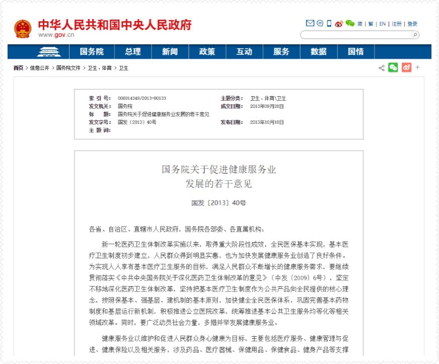 相关区域医学检验中心政策汇总表 1.《关于促进健康服务业发展的若干意见》国办发【2013】40号
