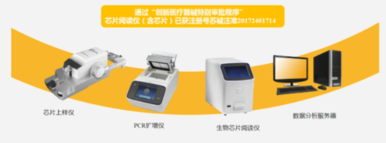 PCR技术自20世纪80年代问世以来,几经技术更迭,如今在感染性疾病、肿瘤、遗传病等医疗领域获得了广泛应用。第一代PCR技术在扩增后,通过凝胶电泳进行分析,仅可获得定性结果。直到20世纪90年代,伴随着生物荧光技术的发展,实时荧光定量PCR(Quantitative Real-time PCR, qPCR)应运而生,并成为核酸定量检测的主流技术,沿用至今。由于qPCR为大体积反应系统,存在较多的背景干扰,无法获得绝对定量结果,随着检测要求的提高,qPCR逐渐无法满足临床一些超高灵敏度、精密度的检测要求。至20世纪末,Vogelstein 等提出数字PCR( digitalPCR,dPCR) 的概念,将一个样本分充分稀释,分配到不同的反应单元,每个单元包含少于或等于一个拷贝的目标分子( DNA 模板) ,在每个反应单元中进行单独、平行的PCR反应分,扩增结束后对各个反应单元的荧光信号进行统计学分析,以实现绝对定量及稀有等位基因的检测。 数字PCR技术原理 dPCR反应系统一般包含两部分,即PCR扩增和荧光定量。 与qPCR反应系统不同,dPCR在扩增前需进行样本稀释,构建多个独立反应单元,每个单元内包含一个或不含目标扩增核酸。这一步预处理目前主要实现方式包括:基于液滴微流控的微滴数字PCR(droplet digital PCR, ddPCR)和基于芯片式微流控的微阵列芯片式PCR。目前在数字PCR市场处于领先地位的伯乐(Bio-Rad)公司采用的技术为微滴数字PCR。完成样品的反应单元构建后,部分反应单元包含了靶标分子(阳性),而其他不包含(阴性)。单个分子可以被扩增一百万倍或更多。在扩增期间,TaqMan化学试剂及染料标记探针可用于检测特定序列的靶标。当不存在任何靶标序列时,没有信号累积。PCR分析后,阴性反应片段用于生成样品中靶标分子的绝对计数,而无需标准品或内标。 荧光定量分析时,不同于 qPCR对每个大体积反应系统循环进行实时荧光测定,dPCR 技术在扩增结束后对每个反应单元的荧光信号进行采集,最后根据泊松分布原理及阳性微滴的个数与比例得出靶分子的起始拷贝数或浓度。 在临床实际应用中,常需对多个指标同时进行测定,以提高效率,降低成本。由于dPCR技术单个反应腔仅包含一个或无目标核酸,无法通过qPCR的多腔室扩增与多荧光通道结合方式实现多目标同时检测。目前dPCR多指标检测可通过添加多种荧光染料,进行不同目标物标记,多荧光通道检测,或采取单一荧光染料不同荧光强度的方式实现。 数字PCR市场简析 2010年国内分子诊断市场规模仅为10亿元左右,随着技术的不断进步,分子诊断市场快速增长,占整个体外诊断市场20%左右。随着临床应用的不断开拓,行业增速有望在较长时间内维持20%以上。 PCR技术作为分子诊断的重要组成部分,占分子诊断领域近40%份额,据预测,我国PCR市场在2021年将达53.4亿元,符合增速超13%。 目前数字PCR市场规模并不大,全球约1.5亿至2.5亿美元,占到实时定量荧光PCR市场总规模(约20亿美元)的10%,但增长趋势显著,有望在技术成熟后与目前的荧光定量PCR平分江山,甚至逐步替代现有的二代PCR技术。 数字PCR竞争格局简析 国际巨头纷纷布局 1.伯乐(Bio-Rad) 无论是技术水平,还是市场份额,拥有二十多年PCR产品研发、生产经验的伯乐公司伯乐都是当前数字PCR市场领跑者。伯乐于2011年斥资1.62亿美元,完成QuantaLife公司的收购,正式进军数字PCR市场,随后推出QX100、QX200微滴式数字PCR系统以及最新的QX One集成液滴数字系统。同时伯乐于2017年收购液滴式数字PCR系统制造商RainDance Technologies,该公司核心技术可在短时间内生成数百万个皮升级的微液滴,可将伯乐原液滴数提升250-500倍。两者的融合进一步稳固了伯乐在数字PCR领域的领军地位。据最新财报显示,伯乐2019年实现销售收入超23亿美元,ddPCR增长强劲。 2.赛默飞(Thermo Fisher) 赛默飞于2013年斥资136亿美元,同时继承22亿美元债务,完成对Life Technologies的收购,随即推出QuantStudio™ 3D数字PCR系统。与伯乐的微滴式数字PCR不同,赛默飞的产品采用的是硅基材料纳升微孔板芯片技术,将样本均匀的分配至20000个单独的反应孔中。 3.Stilla Technologies Stilla Technologies作为一家成立于2013年的年轻法国公司,在2018年获得测序大亨Illumina 1600万欧的A轮投资。2016年,Stilla Technologies推出Naica crystal微滴数字PCR系统,旨在为专门从事分子生物学的研究机构精确定量DNA突变。2019年发布高通量数字PCR系统-Naica HT,配合新型的Opal芯片,较Naica数字PCR系统的通量有效提高四倍。同时,Stilla公司正在开发六色检测的数字PCR系统,进行多重目标基因的数字PCR检测,目前该系统正在测试中,预计将于2020年或2021年上市。 4.凯杰 作为一家全球领先样品制备和分析技术,凯杰通过收购Formulatrix公司数字PCR技术,正式跨界数字PCR市场。凯杰计划将自己样本分析的先进技术及自动化解决方案与数字PCR技术相结合,完成新一代数字PCR系统的开发,并开始手持电池驱动的数字PCR系统研发。凯杰曾预测其产品将于2020年面世。 5.罗氏 罗氏在研的数字PCR系统,将有望实现良好的多靶点混合检测,或将代表数字PCR革新向前推进了一大步。罗氏计划通过欧盟 CE/IVD 的认证,在临床进行商业化推广,并计划在美国获得上市前申请(510k)豁免认证,以进行销售。罗氏本次研发的新数字PCR仪面世或将成为Bio-Rad的液滴数字PCR仪的劲敌。 国内新锐频现 1.领航基因 领航基因致力于数字PCR产业链中游产品的研发、生产和销售,产品覆盖数字PCR技术相关