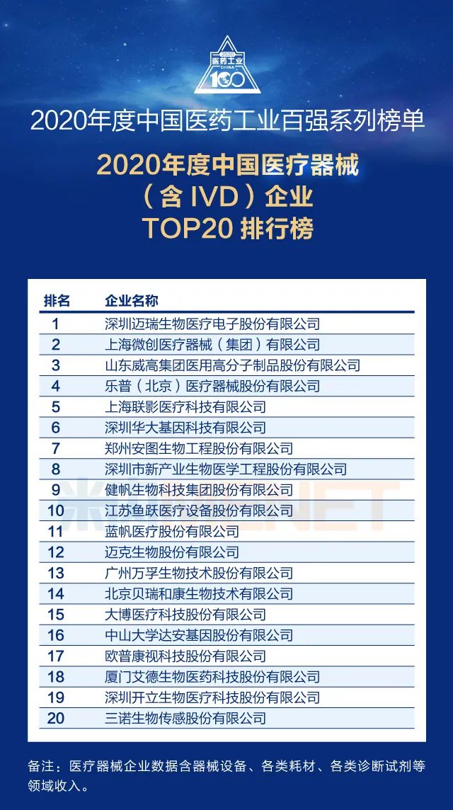 实力超群!迈瑞、万孚、安图、迈克、新产业等IVD企业上榜2020中国医药工业百强系列榜 ...