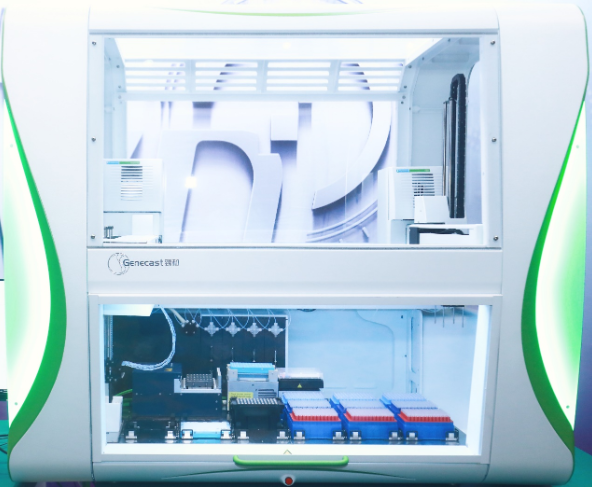 直面挑战,整体方案解决实验室痛点 有了好的技术和产品,并不等于马上就有好的市场。 薛卫成表示,任何一个新技术的推广都会经历开始的“雷声大、雨点小”的阶段,甚至还会有各种阻力。但是一旦经受住质疑与批判,最终大浪淘沙留下的都是精品。 更为现实的原因是,由于面临着实验室环境建设、人员配置、样本质量管控、生物信息分析、报告解读等方面的诸多挑战,NGS检测在各级医院的开展大大受限。 基于此,秉承“以临床需求为导向”的发展理念,臻和科技针对NGS技术落地难的局面,积极打造出一整套完善、可靠且有创新性的IVD整体解决方案,具有高效稳定、操作便捷、灵活可兼容等优势,真正实现了全流程自动化。 Genecast Genius G1全自动样品处理系统 在此次会议上,臻和重磅推出了Genecast Genius G1全自动样品处理系统及Genecast INTEGRO V1.0 全自动生信分析一体机等产品,全面助力NGS技术在医院的落地。 其中,Genecast Genius G1 全自动样品处理系统采用集成化设计,预置高精密移液系统、PCR仪、恒温/震荡等功能模块,以及全面的防污染设置,NGS建库的各个环节大部分能在该设备上自动化完成,有效降低人员和实验室投入,全面提升实验室整体工作效率和运行稳定性。 据许青博士介绍,这款处理系统主要针对的是NGS建库的难题。“NGS建库是获取高质量核酸测序数据的关键,在NGS检测全流程中占据重要一环,但该环节操作复杂、难度大,在一定程度上限制了NGS技术在医院的开展,实现NGS建库的自动化、标准化、简易化,尽可能地减少人为干扰是必然的发展趋势。” Genecast INTEGRO V1.0 全自动生信分析一体机 除了试剂盒与建库仪,臻和科技此次还发布了一款专门为肿瘤NGS实验室打造的Genecast INTEGRO V1.0 全自动生信分析一体机,该产品是高性能、全自动、可拓展的生物分析系统和数据管理一站式服务平台。它集数据管理、生信分析、结果展示、报告解读于一体,最大程度满足肿瘤基因检测对下机数据的质控管理、分析速度、报告解读等临床应用需求。 此外,臻和科技自主开发的专利核心算法和安全存储技术,可以保障运行过程中的分析准确和数据安全。 “我们希望能够更好地为医院和医生赋能,借助更多的工具和手段对抗癌症,让患者拥有更好的治疗方式和生命质量。”杜波表示。