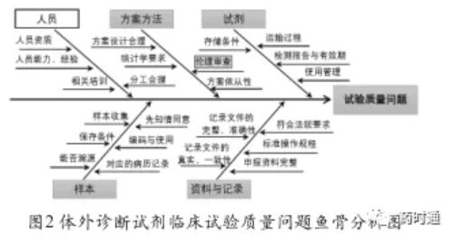体外诊断试剂临床试验是指在相应的临床环境中,对体外诊断试剂的临床性能进行的系统性研究。为提高体外诊断试剂临床试验质量,本研究依托试验机构对承接的项目进行自查,应用帕累托图分析和鱼骨图根因分析查找质量问题的根本原因,并从试验设计、试验实施、数据总结与报告3个环节梳理出提高试验质量的管理要点和策略。