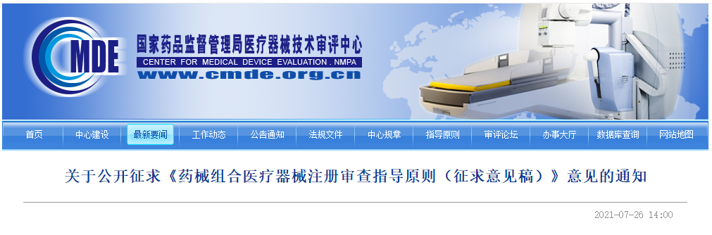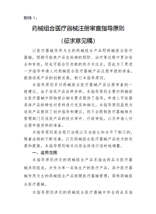 附件: 1. 药械组合医疗器械注册审查指导原则(征求意见稿)(征求意见稿)(下载) 2. 药械组合医疗器械注册审查指导原则(征求意见稿)反馈意见表(下载)