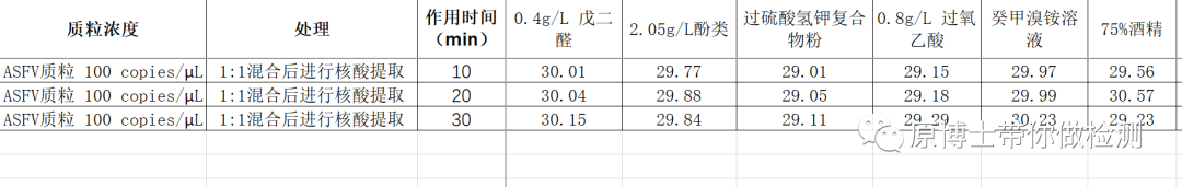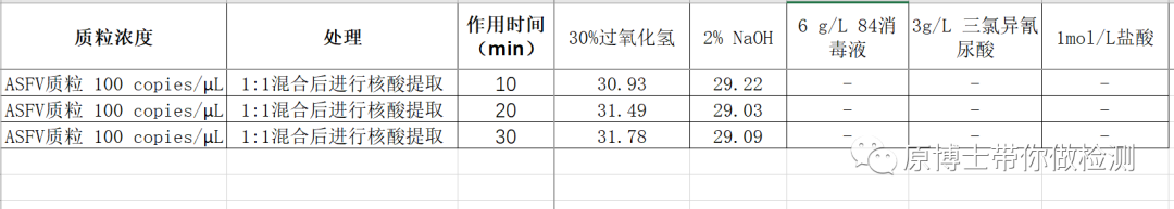 PCR类的方法与核酸检测实验室的核酸气溶胶污染就像一个硬币的两面,我们只能选择都要或者都不要,而无法选择要字还是要花。我的实验室也污染过:案例分享:当PCR实验室发生污染时该怎么做?我也做了很多的实验来筛选一个好的核酸去除剂DNA去除剂不能成为实验室“隐秘的角落”!结果让人触目惊心。可是对于从事核酸检测的实验室人员内心一直渴望一种终极的核酸气溶胶污染解决方案:对核酸气溶胶污染的房间进行空气核酸清除。这个实验我从构思到断断续续的实验用了差不多1年的时间,这期间也有和很多朋友进行交流,最终形成下面的实验方案。 一、DNA去除剂的筛选 要实现核酸气溶胶污染的空间清除,首先要筛选出在液体状态下可以去除核酸的DNA去除剂。因为真正管用的DNA去除剂也不多。实验方法详见:DNA去除剂不能成为实验室“隐秘的角落”! 本次试验将经过数字PCR定量的100 copies/μL (CT约为31)ASFV质粒与DNA去除剂按照等体积混合,室温分别作用10min,20min和30min,进行核酸提取后,进行qPCR扩增,与质粒和水混合的阳性对照进行比较。由于并非同一次实验完成,所以结果之间可能存在一定的偏差,但是不影响试验的结论。到目前为止我一共评价了10种市售DNA去除剂产品,只有1号,6号和8号产品在液体状态下可有效降解质粒DNA,其他产品几乎无任何效果。 表1 市售DNA去除剂的核酸去除效果 二、常用消毒剂的DNA去除效果实验 1.常用消毒剂的筛选 实验室中常用的消毒剂种类众多:醛类、酚类、醇类、季铵盐类、过氧化物、氯制剂以及酸碱,这些消毒剂对微生物的消毒效果已经经过充分的实验验证,但是对于核酸的降解效果尚没有充分的实验数据。对于核酸检测实验室需要一种既对微生物的消毒效果好同时又能降解DNA的消毒剂。试验结果表明,仅84消毒液和三氯异氰尿酸两种氯制剂和1 M盐酸符合要求。由于1 M盐酸具有较强的腐蚀性,重点推荐氯制剂作为核酸检测实验室的废弃物处理,但是氯制剂具有金属腐蚀性,不能用于仪器设备的消毒。 表2 不同类型消毒剂的DNA去除效果 2.氯制剂的最低有效浓度 氯制剂类消毒液具有强大的DNA降解作用,但是由于其有金属腐蚀性和刺激性,使用时可用于清洁地面,非金属台面以及浸泡吸头、离心管等试验物品。 根据《新冠肺炎疫情消毒技术指南 》:污染物(患者血液、分泌物和呕吐物)有效氯 5g/L-10g/L 的含氯消毒液;地面、墙壁、物体表面使用有效氯 1g/L 的含氯消毒液;衣服、被褥等纺织品先用有效氯 0.5g/L 的含氯消毒液浸泡 30 分钟,然后按常规清洗。 表3 氯制剂消毒液不同浓度的DNA去除效果 试验结果表明:作用5min时,有效氯浓度大于等于1.2 g/L的含氯消毒液,可将100 copies/μL质粒完全降解。作用10min时,有效氯浓度大于等于0.6 g/L的84消毒液,可将100 copies/μL质粒完全降解。 三、核酸气溶胶污染的空气清除实验 核酸气溶胶污染的空气清除实验如何做呢?大部分想到的都是造一个气溶胶污染的环境然后进行清除,或者是污染之后进行核酸清除。对于我来说一个无法重复、实验结果无法定量分析的实验是没有意义的,所以我借鉴了消毒剂空气消毒的一些方法。参见《GB27948-2020 空气消毒剂通用要求》和《消毒技术规范》 1.试验材料 1.1DNA去除剂:本次试验共选择了表1中6和8两款市售DNA去除剂。 1.2测试质粒:由于考虑到大部分实验室污染的CT值都会高于30,因此本次使用的ASFV基因质粒浓度约为100 copies/μL,荧光定量PCR CT约为 31.07 。将质粒加到植绒棉签上风干。 1.3测试仪器:由深圳润联环保科技有限公司友情支持的比林科汉KVBOX消毒仪,该仪器配合过氧化氢消毒液具有优异的空气消毒性能,可有效杀灭芽孢等微生物。 1.4测试空间:约0.1立方米的密闭传递窗。 2.试验方法 消毒机上设置消毒液的量为10ml,浓度为100 ml/m3,远远高于《GB27948-2020 空气消毒剂通用要求》:使用气溶胶喷雾消毒时,消毒剂用量应≤10 ml/m3。 喷雾后密闭2h,之后将加有质粒的植绒拭子用TE洗脱,同时设未经熏蒸的加有质粒的植绒拭子作为对照。使用荧光定量PCR方法进行检测。 表4 空气核酸去除试验结果 3.试验结果 2种液体状态下可以有效降解质粒的DNA去除剂在空气核酸清除实验中完全没有效果。我很期待能找到一种可以用于空气中核酸气溶胶污染去除的方案来彻底地解决核酸检测实验室的核酸气溶胶污染的问题,但是暂时没有找到这样的产品。我相信未来一定会有高性能的核酸去除剂能用于空气核酸去除。 四、放弃幻想,预防为主 无论各个公司如何吹嘘自己的核酸去除产品,我建议广大从事核酸检测的朋友们放弃一劳永逸的幻想,认清现实:核酸气溶胶污染的空气清除难度很大,还是扎扎实实的做好预防措施和日常的监测工作吧! 预防污染见:如何预防和处理PCR检测实验室的核酸污染? 污染处理见:案例分享:当PCR实验室发生污染时该怎么做? 风险监测见:PCR实验室的44个风险监测点 |