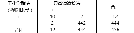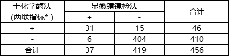 表4  显微镜镜检法和干化学酶法对滴虫性阴道炎检测结果比较