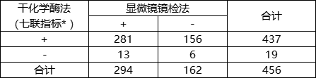 备注:两联指标包括pH、NAG 2个指标,NAG阳性且PH≤4.6为阳性。