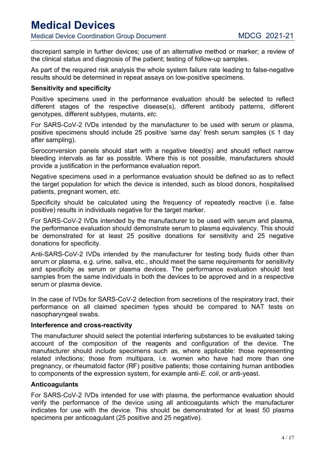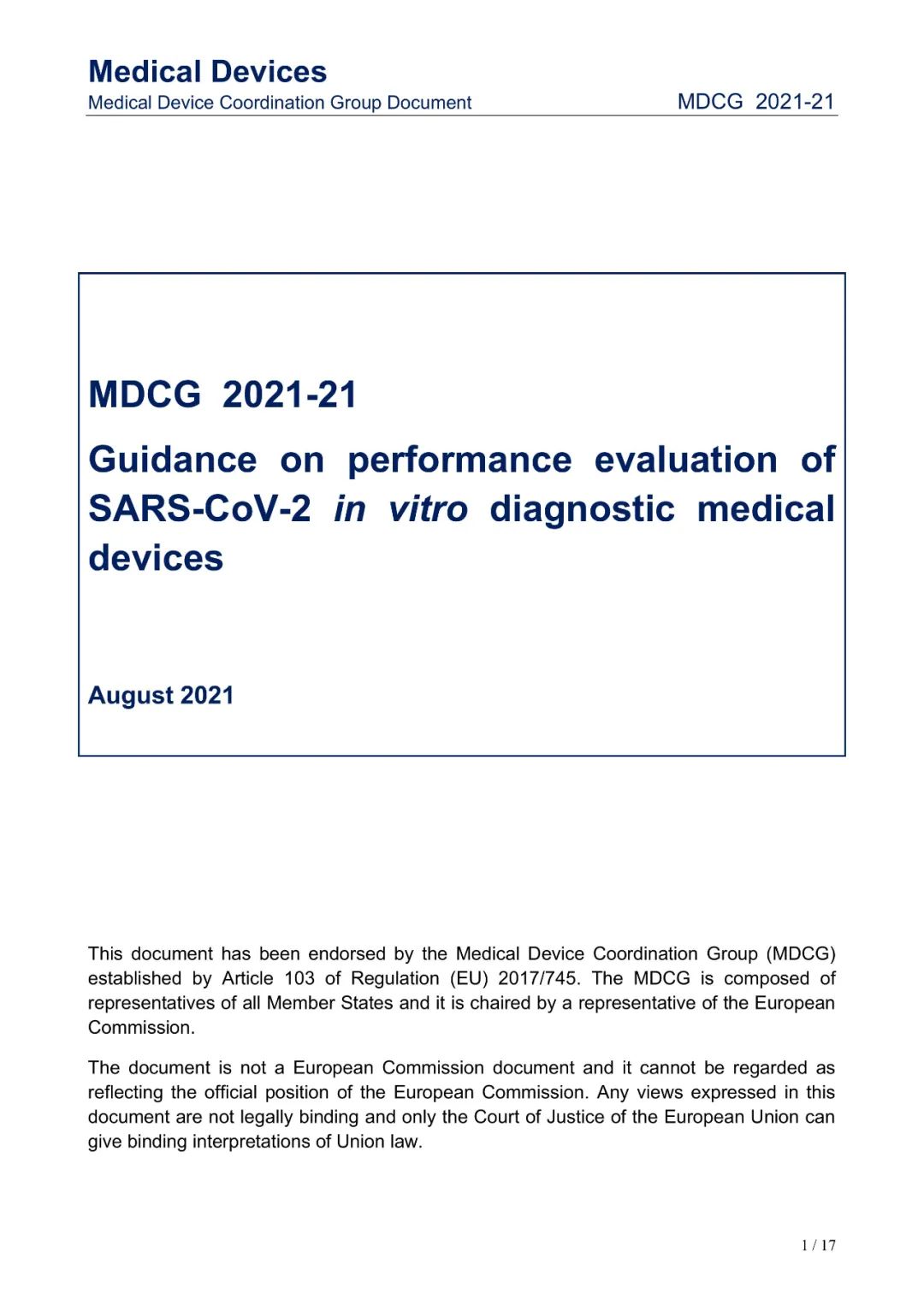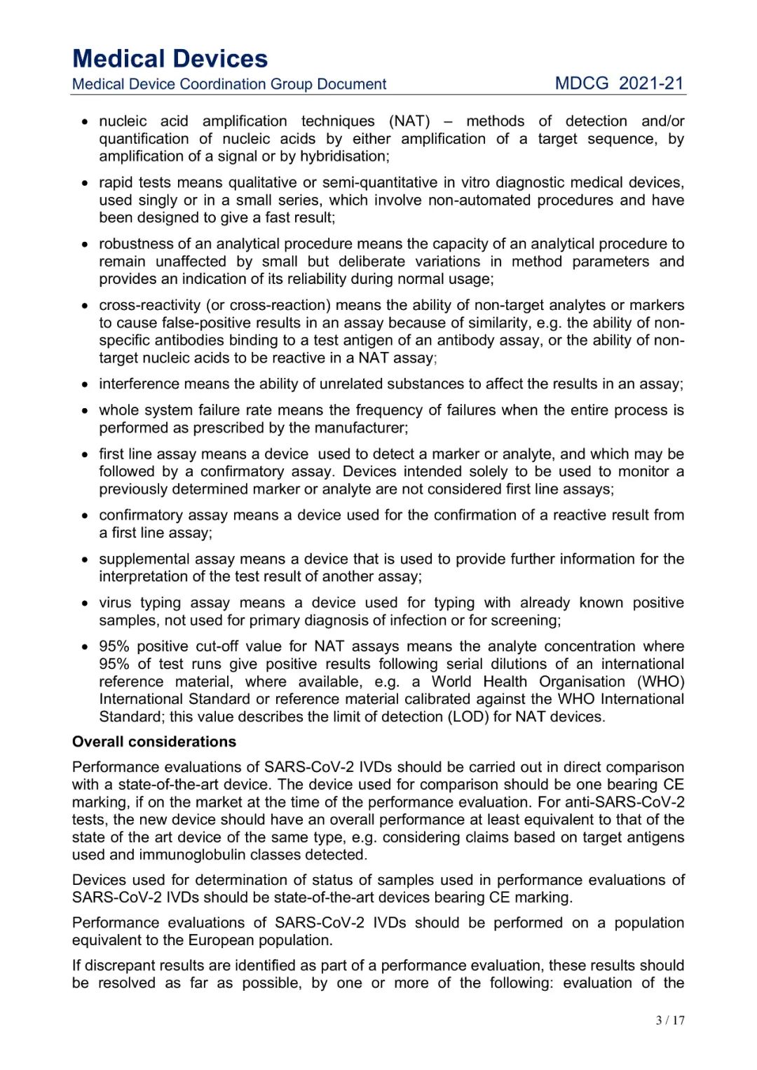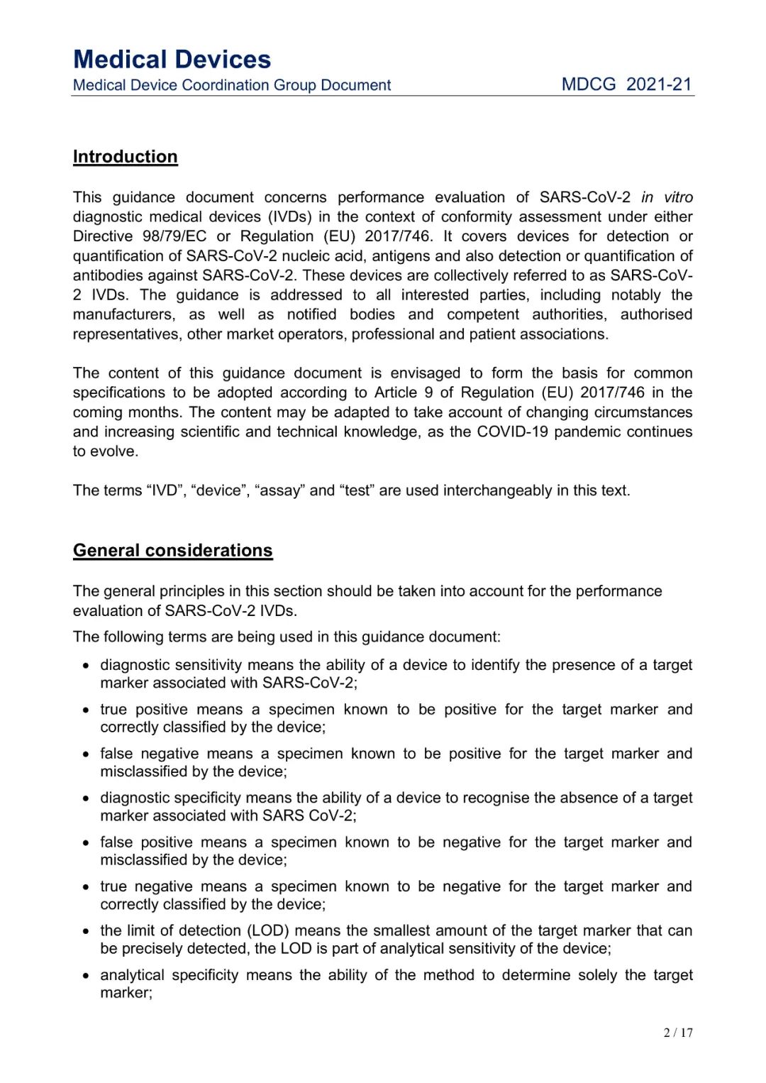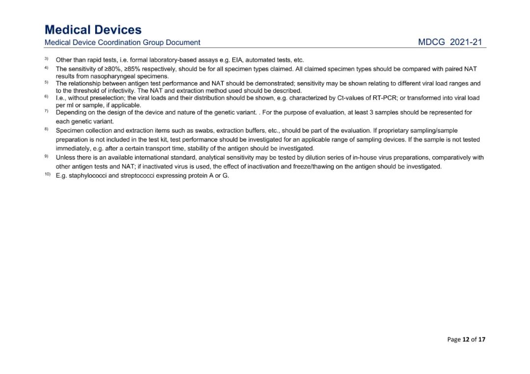 Small Business: This is defined as havinggross receipts or sales of no more than $100 million for the most recent taxyear. 2021年8月3日,欧盟医疗器械协调小组MDCG发布了SARS-CoV-2体外诊断器械的性能评估指南MDCG 2021-21。