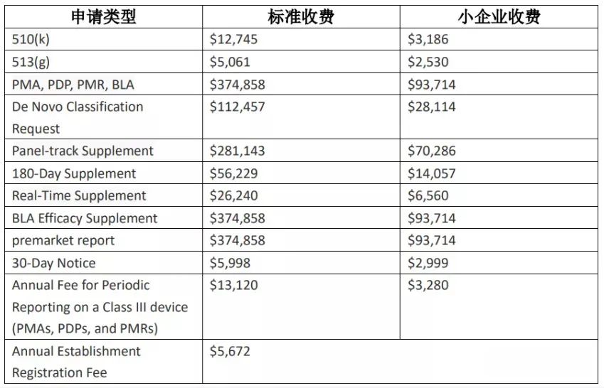2021年7月30日,FDA公布了2022年医疗器械评审收费标准。本次收费标准维持着一如既往的上涨趋势。该费用适用时间为 2021 年 10 月 1 日至 2022 年 9 月 30 日。 其他费率: 注:小规模企业收费,是指FDA认证为小企业资质的公司享受该优惠收费。* FDA小企业资质指的是公司最近税收年度的总收入或销售额未超过1亿美金,并需要提前1-2个月申请FDA小企业资质认证后才能享受优惠;