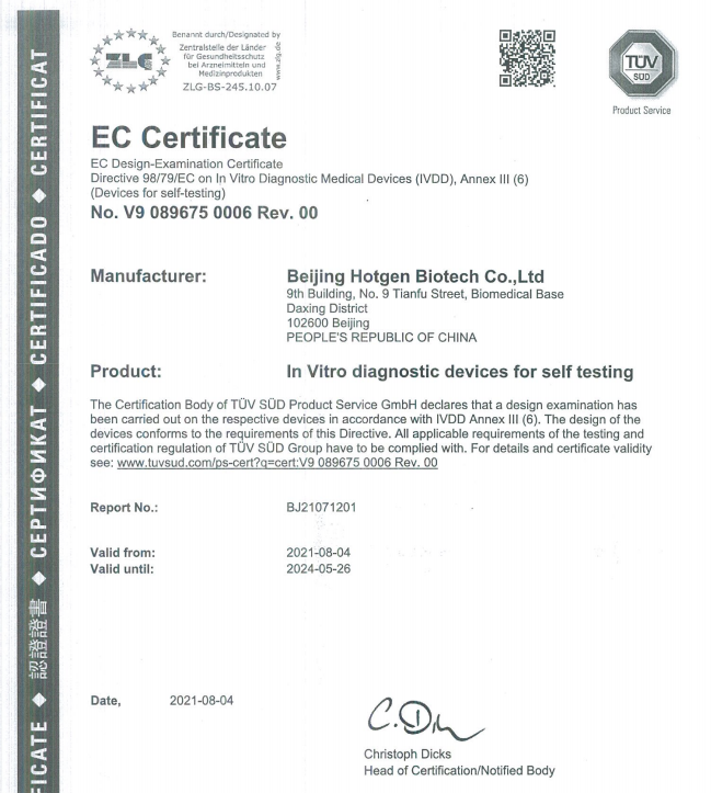 8月4日,热景生物新型冠状病毒抗原自由检测产品获得欧盟CE认证。同期,热景生物重磅推出与该自由检测试剂盒适配的新冠抗原线上检测APP“Covid Test Online”。