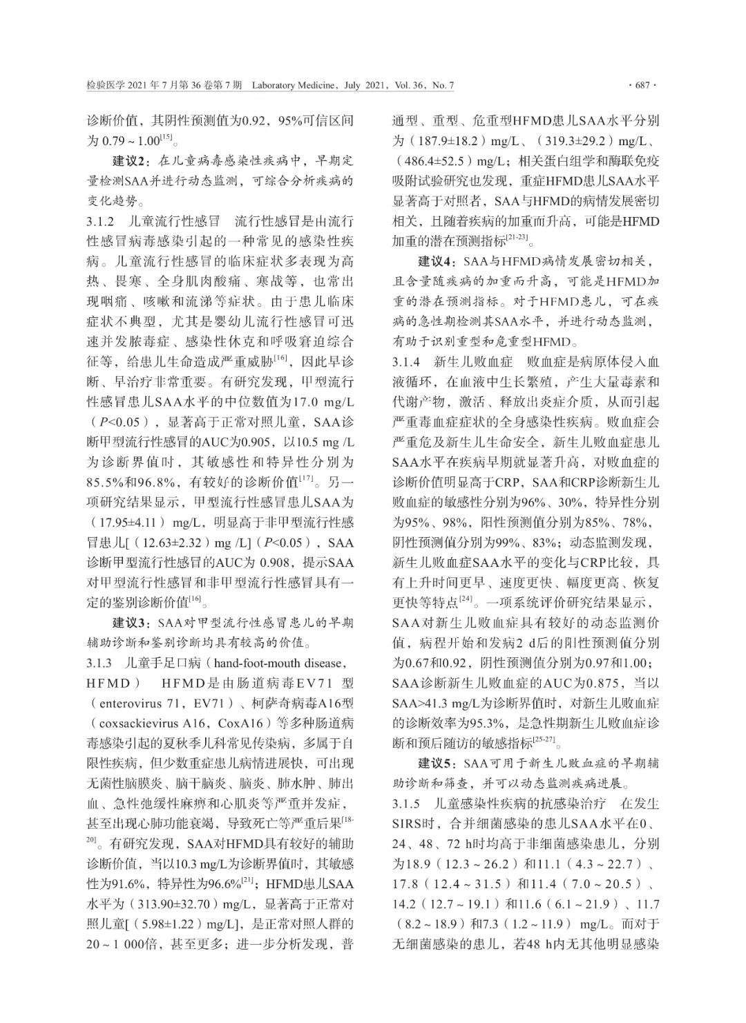 SAA单独和与CRP联合检测在儿童感染性疾病中的应用专家共识