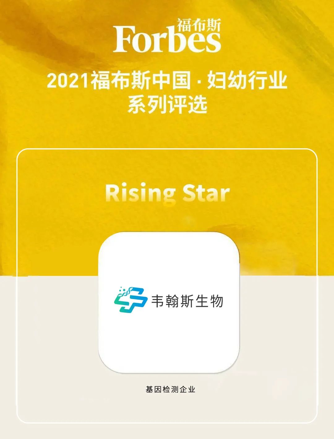 8月4日,福布斯发布“2021福布斯中国妇幼行业系列评选”评选结果,韦翰斯生物荣登2021福布斯中国·妇幼行业系列Rising Star。这是福布斯榜单对韦翰斯生物的重要认可与肯定。 本次“2021福布斯中国妇幼行业系列评选”针对妇幼大产业,选择了五个细分行业并分别评选出其具体细分行业中的标杆企业。评选从五个维度,包括产品创新力、用户满意程度、营销推广方式、上下游产业布局能力、以及企业团队等方面来评价。前后历时4个月,以公开报名、问卷调研及华医数据库等方式获取信息,运用大健康行业成长性价值评估法,每个细分行业均有上百个评价指标,以达到行业最细的颗粒度画像,从而保证其专业性与公正性。 韦翰斯助力中国出生缺陷防控,愿每个家庭都有健康孩子! 上海韦翰斯生物医药科技有限公司成立于2016年,总部位于上海国际医学园区,是一家集产、学、研一体化的国家级高新技术企业。公司拥有行业领先的技术优势和专业能力,与行业内众多顶级专家建立深度战略联盟。 公司专注遗传基因检测,拥有先进的第三方医学检验实验室,超千平米高标准的检测空间,配备一流水准的研发及基因检测分析团队。同时引进了国际标准质量管理体系,建立了包含高通量测序,结构变异检测等在内的遗传基因检测平台,为临床及科研提供全面、专业优质的检测分析服务和精准医学基因检测解决方案。 自创立以来,韦翰斯生物一直秉承“让每个家庭都有健康的孩子”的愿景,以推动生命科学研究进展、生命大数据应用和提高医疗健康水平为出基点,致力于加速科技创新,减少出生缺陷,加强优生防控,抑制重大疾病对人类的危害,全面助力精准医学。通过多年的人才积聚、科研积累和产业积淀,目前已建成覆盖全国各大省市自治区的营销服务网络,与全国数百家三甲医院开展合作。