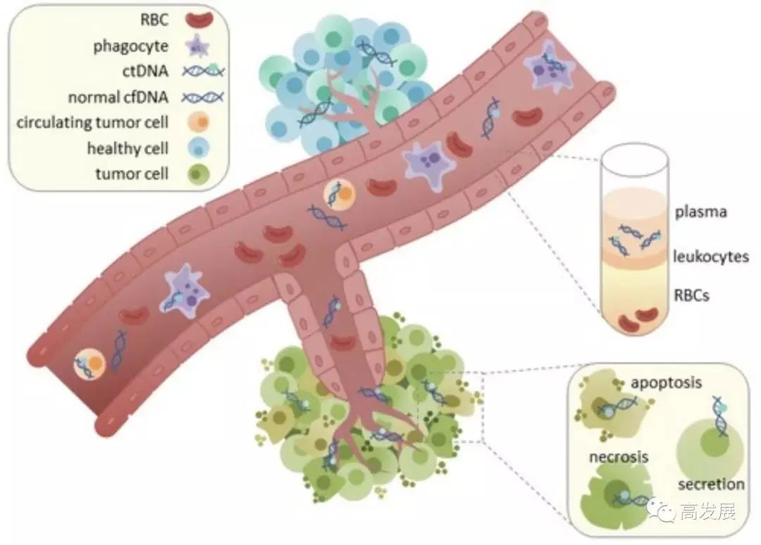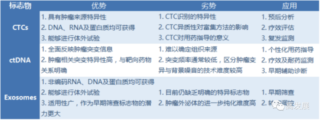 目前,恶性肿瘤是严重威胁人类健康的重要原因之一,给社会带来了沉重的经济负担。随着人口老龄化,肿瘤防治领域面临越来越严峻的挑战。 2019年1月,我国发布了中国癌症统计报告——《2015年中国恶性肿瘤流行情况分析》数据显示,我国2015年有新发恶性肿瘤病例392.9万平均每分钟有7.5个人被确诊为癌症。每年恶性肿瘤所致的医疗花费超过2200亿元。 大部分早期恶性肿瘤通过根治性手术即可得到有效的治疗。当肿瘤在患者体内仅发生微小转移灶,但仍未被临床影像学检查发现的情况下,仍然有50%的患者可通过全身系统性治疗(如化疗、免疫治疗等)达到治愈。一旦恶性肿瘤患者发生了临床明确的转移,将难以被治愈,患者的生存期也将大幅缩短。以肺癌为例,Ⅰ期的非小细胞肺癌患者5年生存率为70%,而Ⅳ期患者的5年生存率则低于5%。 可见,癌症的早期发现和早期治疗将直接降低癌症患者的死亡率、提高患者的生存期。目前的多数癌症筛查方式只能针对单一癌种,如果对多个癌症进行筛查需要逐一完成多项检查;同时,部分筛查方式有侵入性、操作繁琐、预约周期长等情况,导至实际进行全身肿瘤筛查的人群比例较低,为推动癌症的早期诊断和筛查工作带来了困难,因此临床急需精准便捷的肿瘤早筛技术。 据了解,目前我国肿瘤检测方法主要分为传统检测和基因检测两种,涵盖血清肿瘤标记物、医学影像学检查、组织活检、液体活检等方式,而对肿瘤早期诊断最有效的方法是通过体外诊断寻找体液中的肿瘤标志物——液体活检。 液体活检作为体外诊断的重要分支,通过捕获和检测体液(如:血液、尿液、唾液、腹水、胸膜积液等)中的生物标记物(如:血清肿瘤标志物、循环肿瘤细胞(CTC)、循环游离肿瘤DNA(ctDNA)、外泌体等)来诊断和监测肿瘤等疾病。 相较于组织活检,液体活检的优势在于非介入性、可重复性地获得肿瘤样本,其副作用小、操作简便、成本较低、检测速度快,在减小了肿瘤异质性对诊断造成的偏差的同时,也能及时地反应肿瘤发展的动态变化,其临床适应症也极为广泛,如常见的肺癌、乳腺癌、前列腺癌、结直肠癌、食管癌、胃癌、肝癌、胰腺癌等肿瘤均可用液体活检进行诊断与监测。 液体活检相较于传统的组织活检以及医学影像学等手段,能够提前发现尚处于早期的肿瘤,为肿瘤的早筛早诊提供了极具潜力的途径。基于液体活检技术的肿瘤早筛早诊是目前国际肿瘤领域研究集中攻克的热点和难点。JP摩根将液体活检分为早期筛查、诊断分型、药物伴随检测、患者病情检测4个细分领域,预计全球市场潜力达千亿元。 (一)CTC 循环肿瘤细胞(Circulating Tumor Cell, CTC),是指从实体瘤中脱离出来并进入外周血液循环的肿瘤细胞。CTC数目往往很少,而血液中血细胞的数量则非常庞大,要想检测CTC,关键在于根据CTC的物理学特征(大小、密度、电荷、可变形性)和生物学特征(表面抗原、侵袭性等),来实现CTC从血液中的识别和富集。 CTC的富集和后续分析,目前还很少有应用,一是技术难度大,更重要的是少数几个CTC很难完整反映肿瘤完整的信息。目前FDA和CFDA有批准的CTC检测产品,均是根据肿瘤细胞特定抗原对CTC进行计数,利用血液中CTC数目提示疗效、预后等信息。 图一:血液中的CTC (二)ctDNA ctDNA(circulating tumor DNA,循环肿瘤DNA)是指人体血液循环系统中不断流动的携带一定特征(包括突变, 缺少,插入,重排,拷贝数异常,甲基化等)来自肿瘤基因组的DNA 片段。 ctDNA 的主要来源包括:1、来自坏死的肿瘤细胞;2、来自凋亡的肿瘤细胞;3、循环肿瘤细胞;4、来自肿瘤细胞分泌的外排体。ctDNA有助于肿瘤患者的早期诊断,疗效监测、耐药评估及提前预测肿瘤的转移复发等。其中,由于胃癌高度异质性及治疗过程中胃癌基因突变的不确定性,ctDNA和CTC检测更能满足胃癌精准治疗的要求。 目前关于ctDNA的研究更多地集中于其携带的基因突变上,但利用基因突变不能回溯肿瘤原发灶,因此目前正在探索ctDNA甲基化作为肿瘤的生物标志物,DNA甲基化具有组织特异性,能帮助医生精确地追踪到原发肿瘤器官或组织。 图二:血液中的ctDNA (三)外泌体 外泌体(Exosome),是一种能被大多数细胞分泌的微小膜泡,具有脂质双层膜结构,直径大约40-100 nm。 最近几年,人们发现这种微小膜泡中含有细胞特异的蛋白、脂质和核酸,能作为信号分子传递给其他细胞从而改变其他细胞的功能。研究发现肿瘤细胞释放的外泌体的量较大,这些外泌体与肿瘤的发生、发展、转移以及抗药性具有一定的相关性。 因此,可以利用肿瘤细胞释放到血液中的外泌体,检测其中特异的蛋白和非编码RNA等,来分析肿瘤相关的信息。外泌体的分析主要对象是其中的特异性RNA和蛋白。例如,有研究发现胰腺癌病人血清中GPC1(glypican-1)阳性的外泌体占比显著增高;另有研究者发现,肿瘤会释放携带高水平miR-122的囊泡来营造适合肿瘤转移的土壤,这暗示着肿瘤外泌体中miR-122可能是一个潜在的标志物和药物靶点。 虽然外泌体应用的前景广阔,但目前仍处于研究阶段,其提取、纯化的技术难度较高,对于外泌体中具体标志物的选择,还需要科研上有更多成果的支持。 图三:CTC、ctDNA与外泌体比较 由于肿瘤DNA水平变异研究得最为成熟,而测序技术的发展也为ctDNA检测提供了技术手段。因此,目前ctDNA的应用最为成熟,尤其是在指导用药方面,ctDNA有无可比