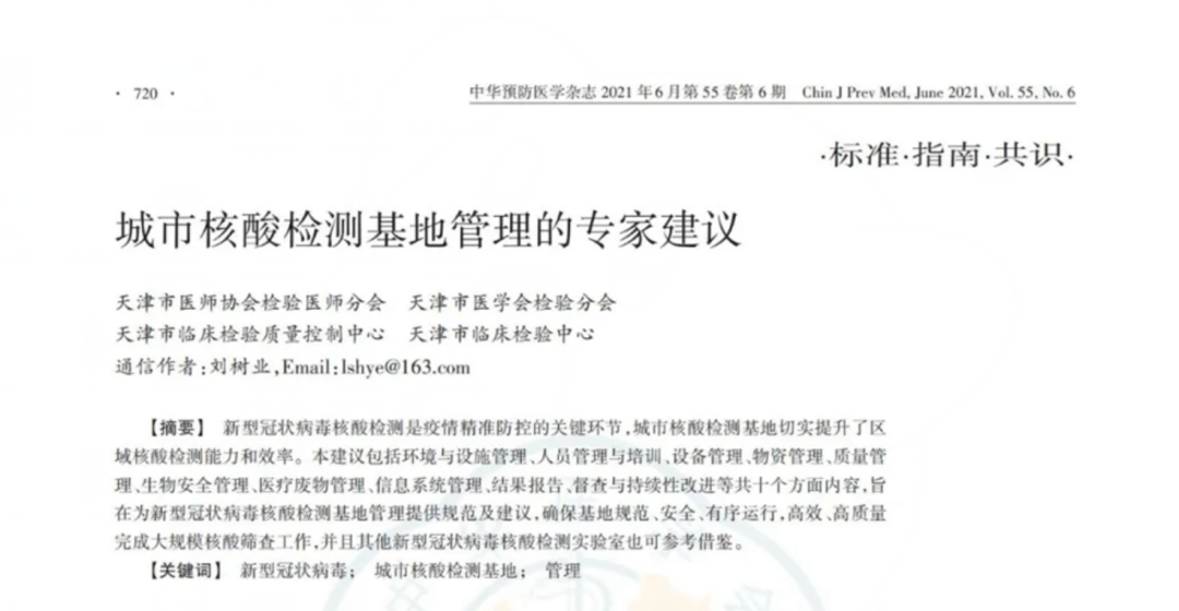 专家共识 | 城市核酸检测基地管理的专家建议